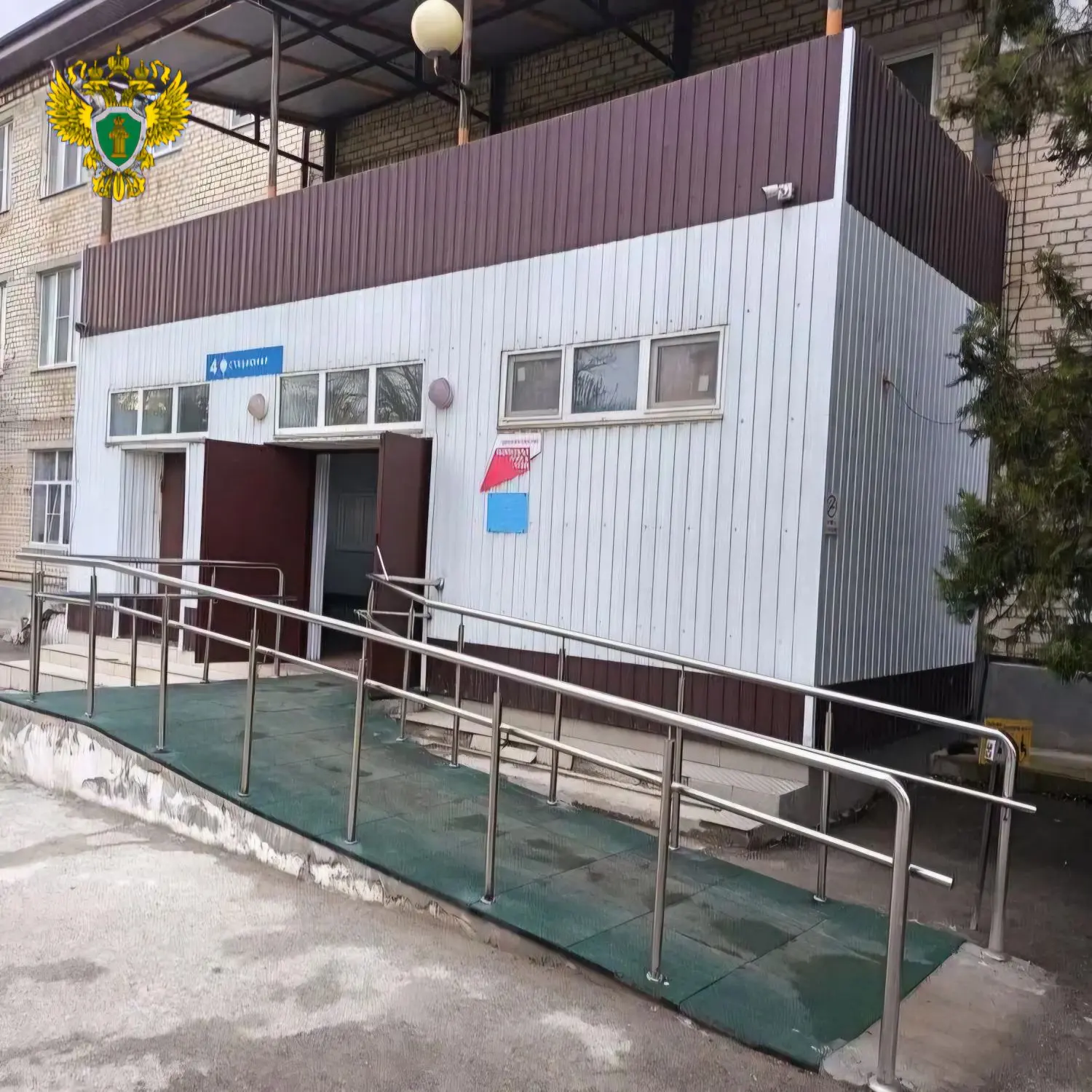 В настоящее время по требованию надзорного ведомства вход в медучреждение оборудован пандусом и специальными поручнями для инвалидов.