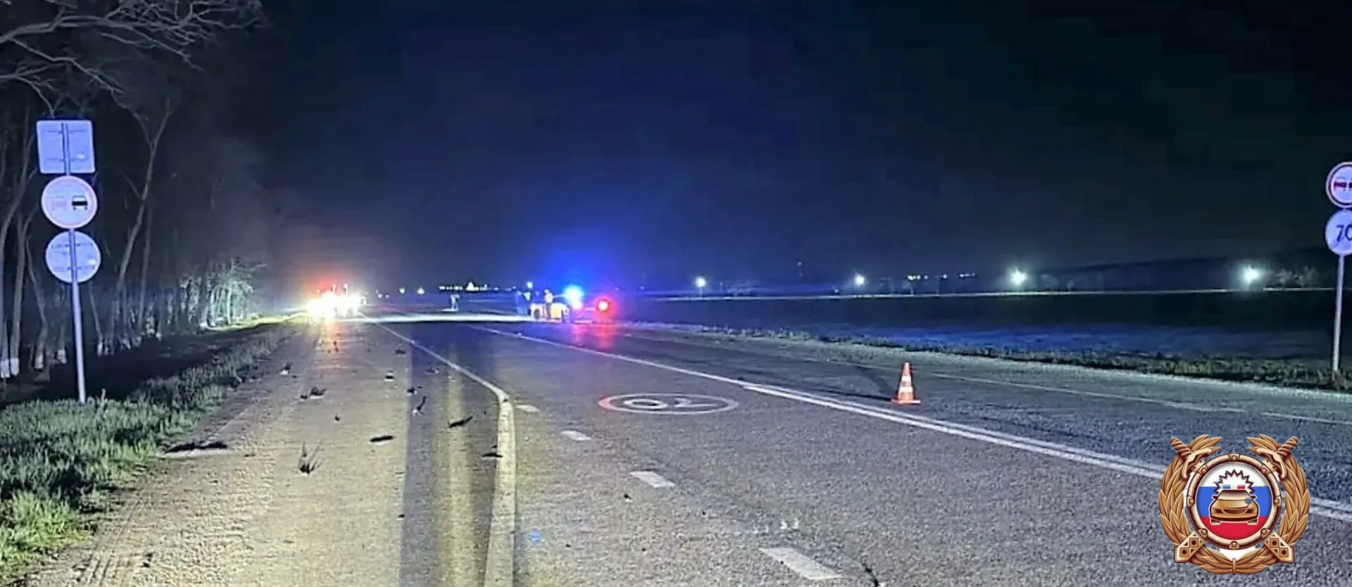 По предварительной информации, 14 апреля около 19 часов 40 минут на 327 км. федеральной автодороги «Кочубей - Нефтекумск - Зеленокумск - Минеральные Воды» 79-летний водитель легкового автомобиля «Вольво», двигаясь со стороны г. Минеральные Воды в направлении г. Георгиевска, нарушил требования дорожной разметки 1.3 ПДД РФ (двойная сплошная), выехал на полосу предназначенную для встречного движения, при завершении манёвра обгона, создал помеху для движения обгоняемому грузовику «Камаз», под управлением 30-летнего водителя, в результате чего произошло столкновение, съезд легкового автомобиля в кювет с наездом на дерево.