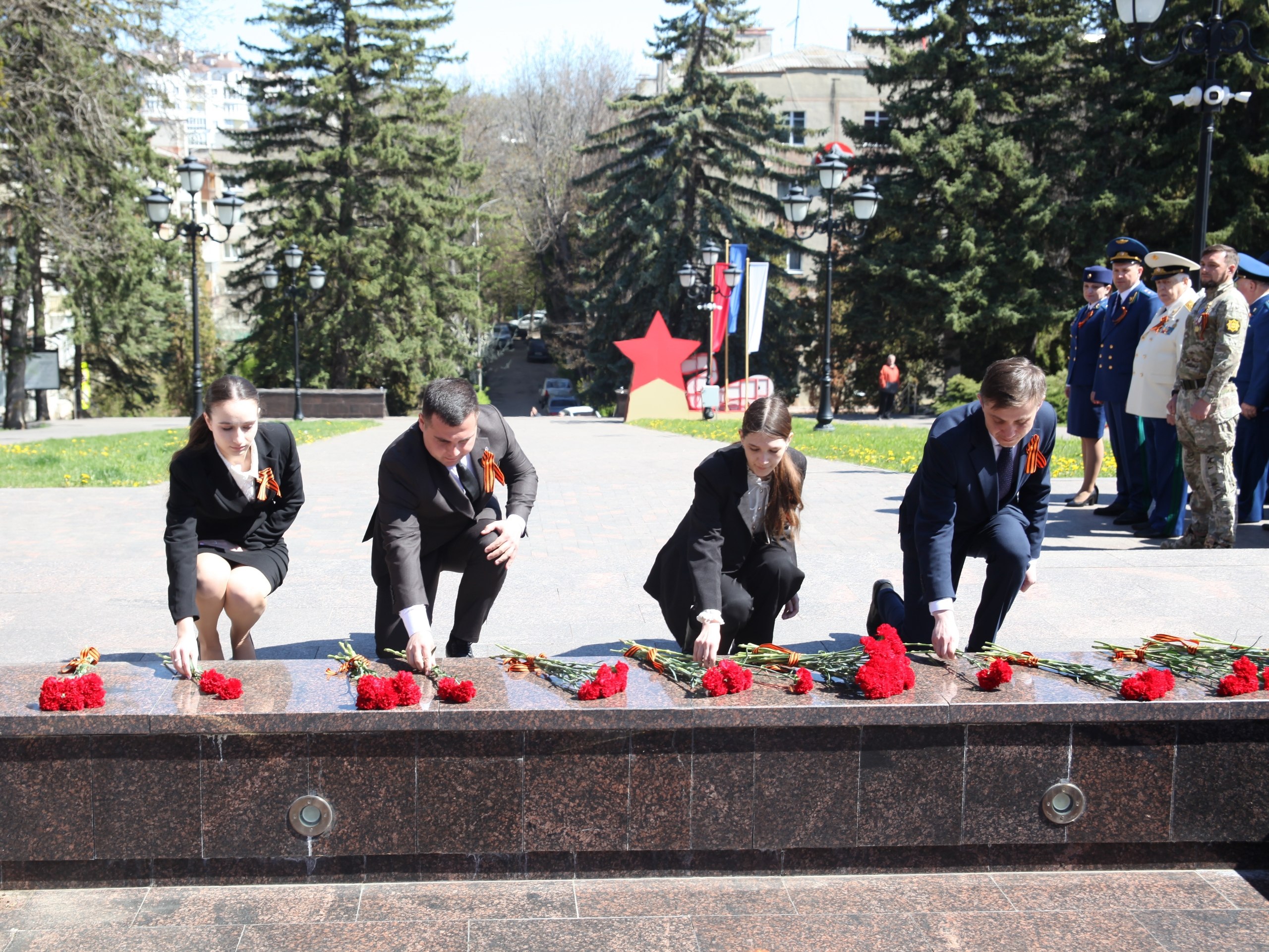 После принятия Присяги участники церемонии почтили память погибших в годы Великой Отечественной войны минутой молчания и возложили цветы к мемориалу «Солдатам Родины».