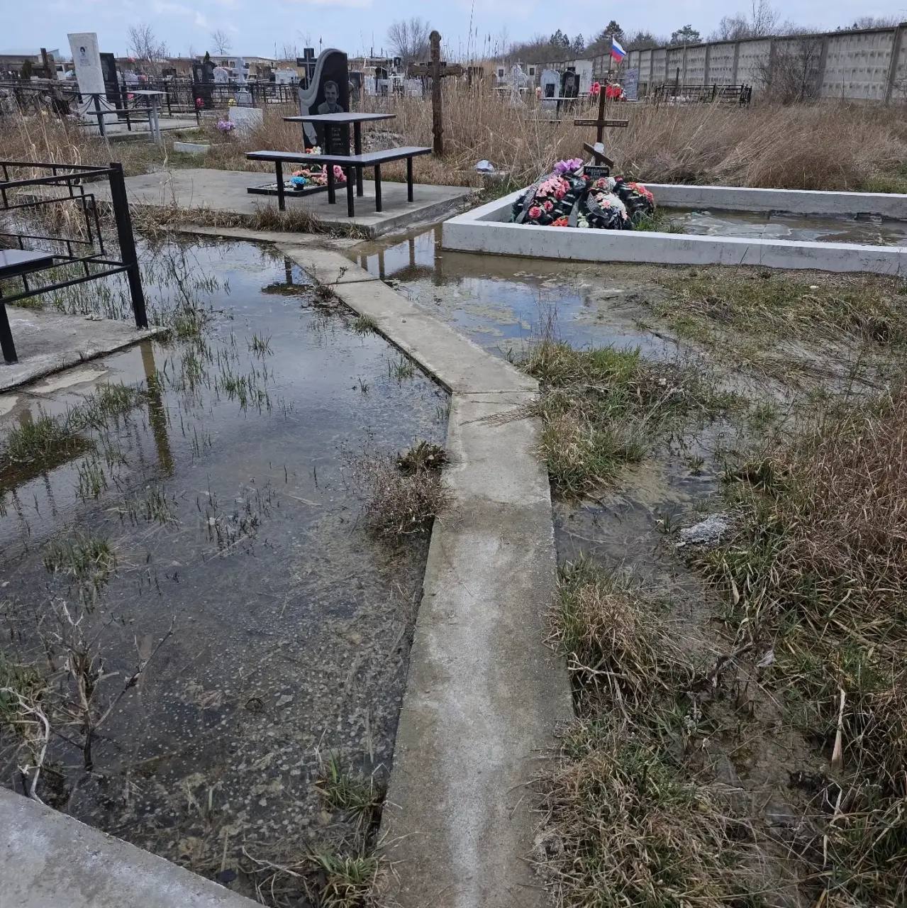 В местных телеграм-каналах жители пишут, что особенно сильно оно страдает весной, когда снег начинает таять, либо в сезон осадков. Подойти к могилам в этот период практически невозможно: