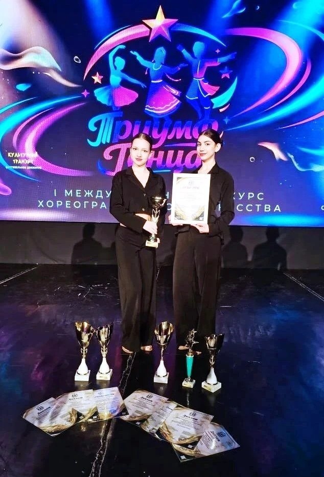 Ессентукские ученицы МБОУ СОШ № 1 - Софья Берест (6Г класс) и Анна Янакова (10 класс), воспитанницы творческого коллектива Ю’la, - стали лауреатами I степени в Международном конкурсе хореографического искусства «Триумф Танца» во всех номинациях за исполнение композиций «Кармен», «Стиляги» и «В трендах».