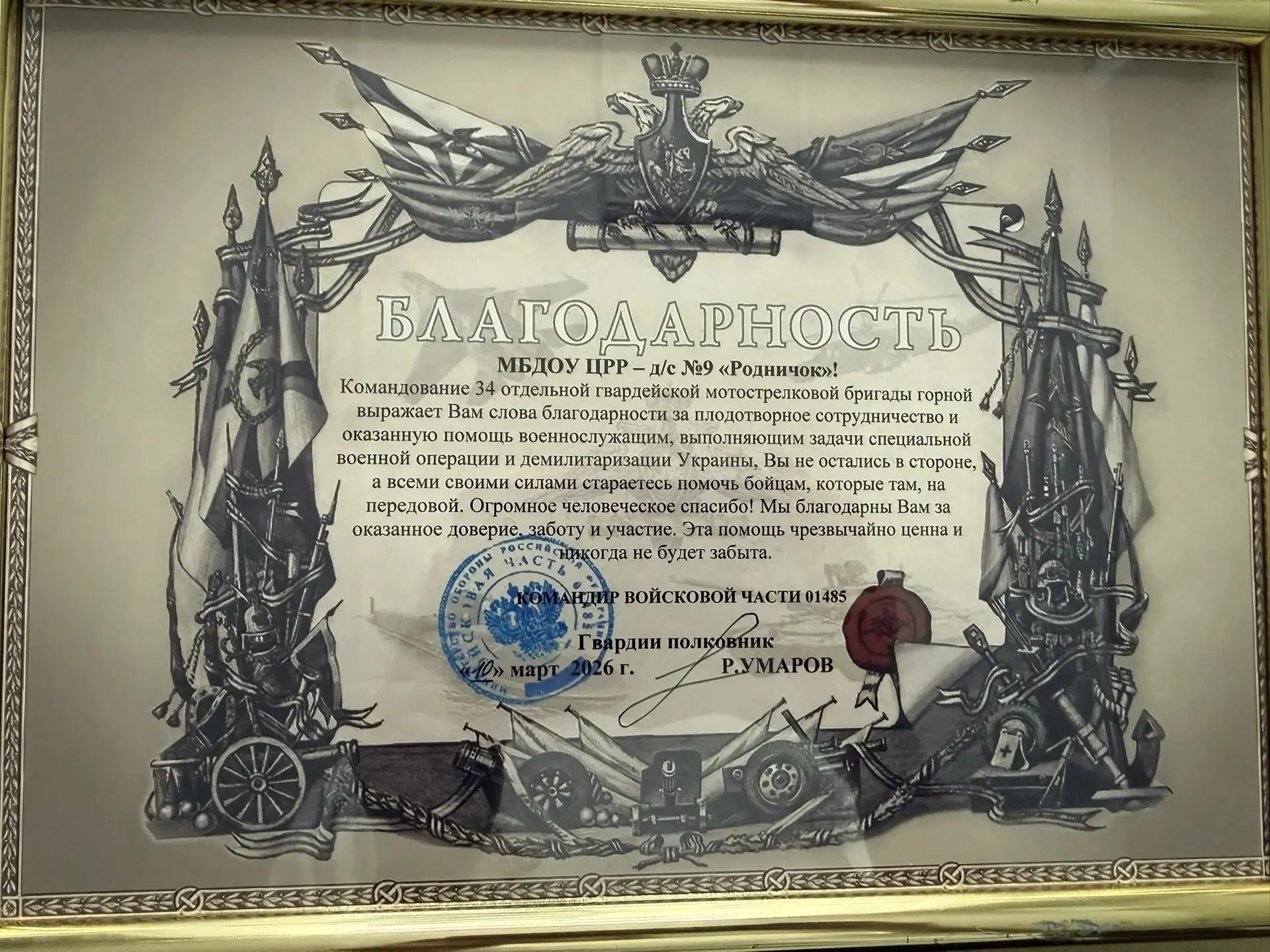Детский сад давно поддерживает военнослужащих - отправляет посылки с гуманитарной помощью, письма, детские рисунки.