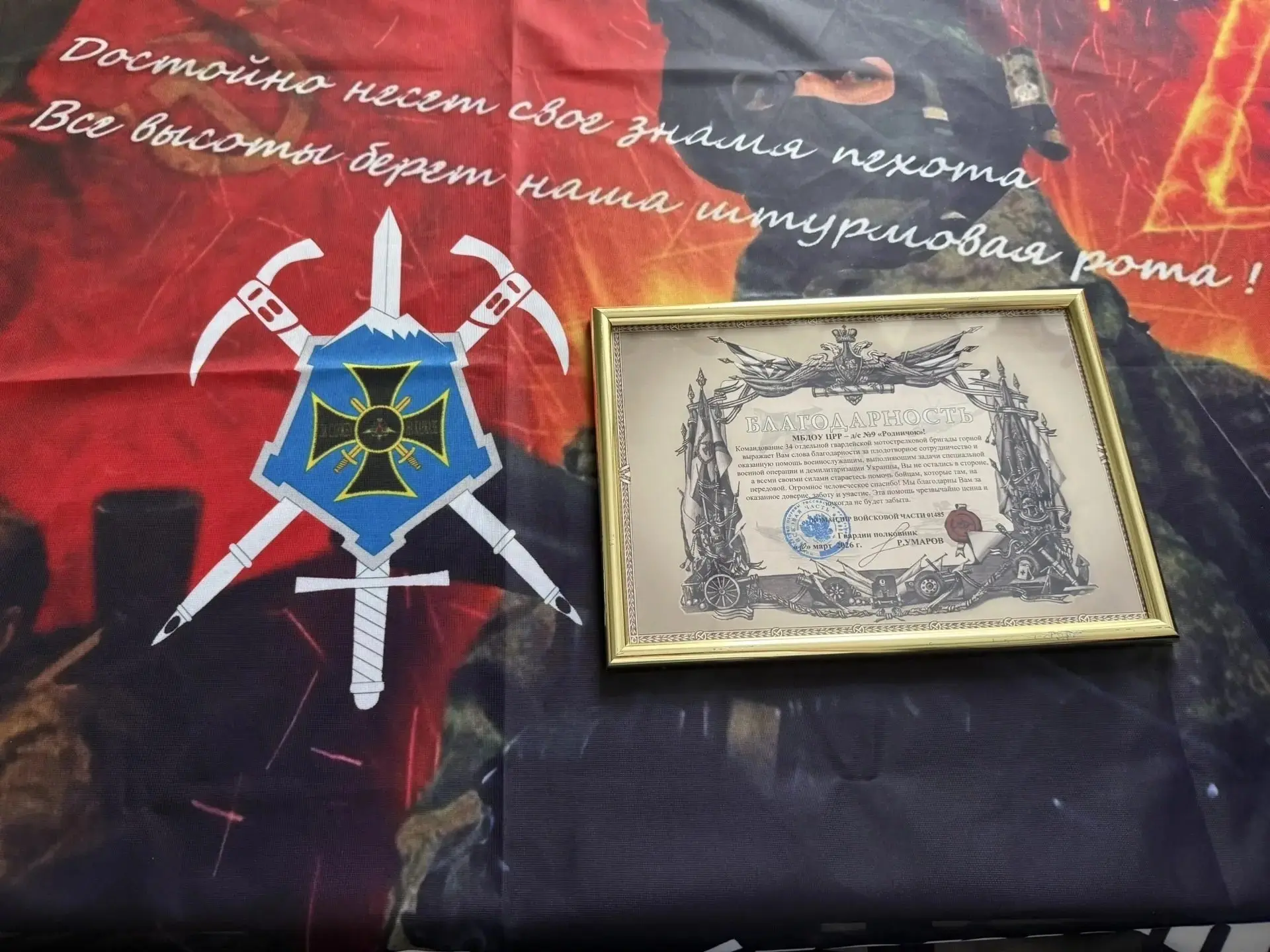 И эта помощь будет продолжаться. Наши защитники приехали не просто в гости: они передали искреннюю благодарность от всей бригады и именной флаг штурмовой роты.