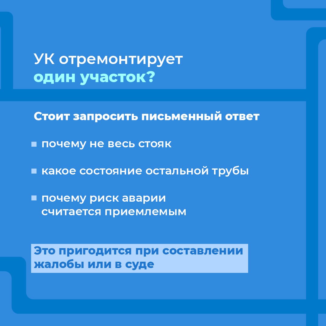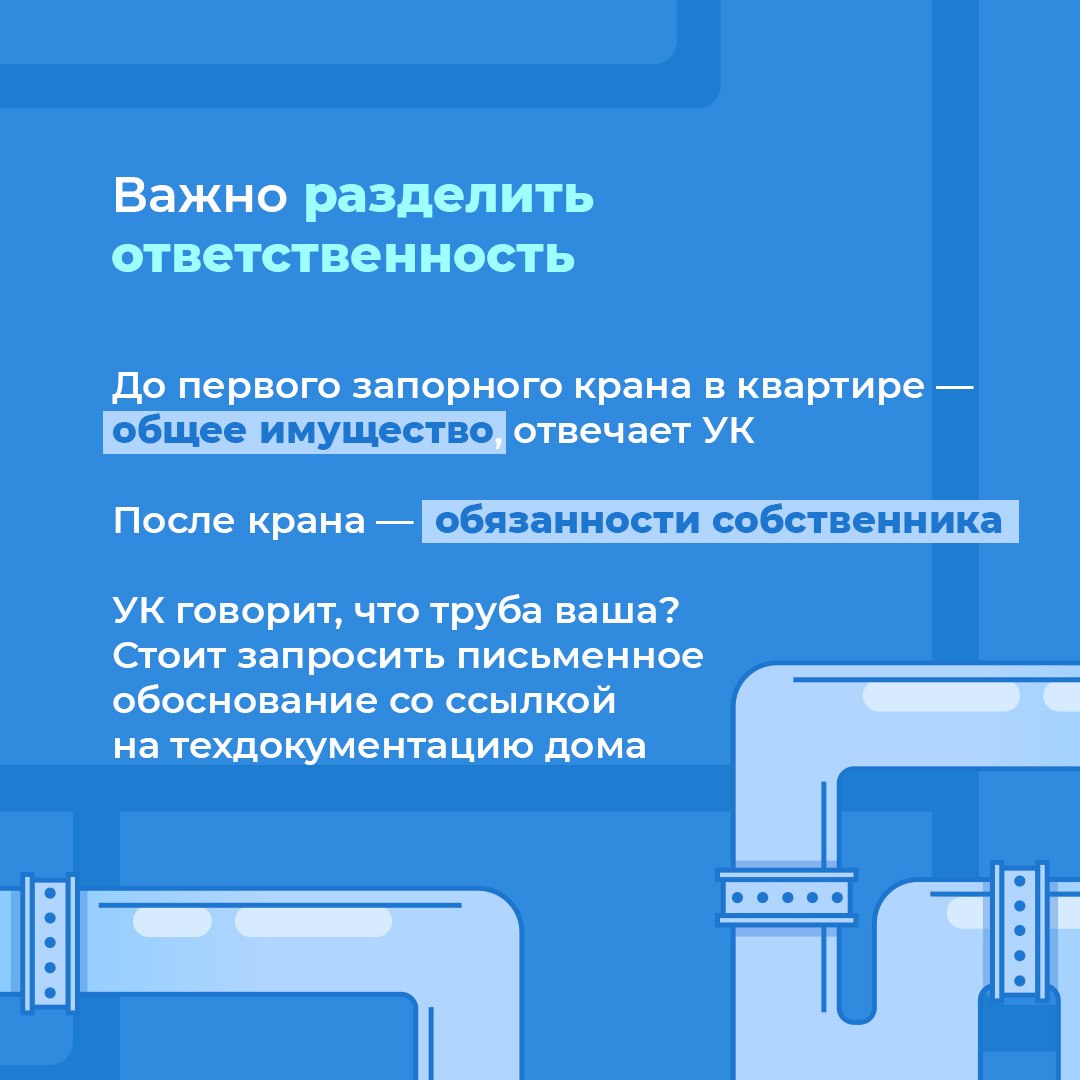 На практике добиться замены бывает непросто. УК ссылается на капремонт, соседи не пускают рабочих, а границу ответственности сложно определить.