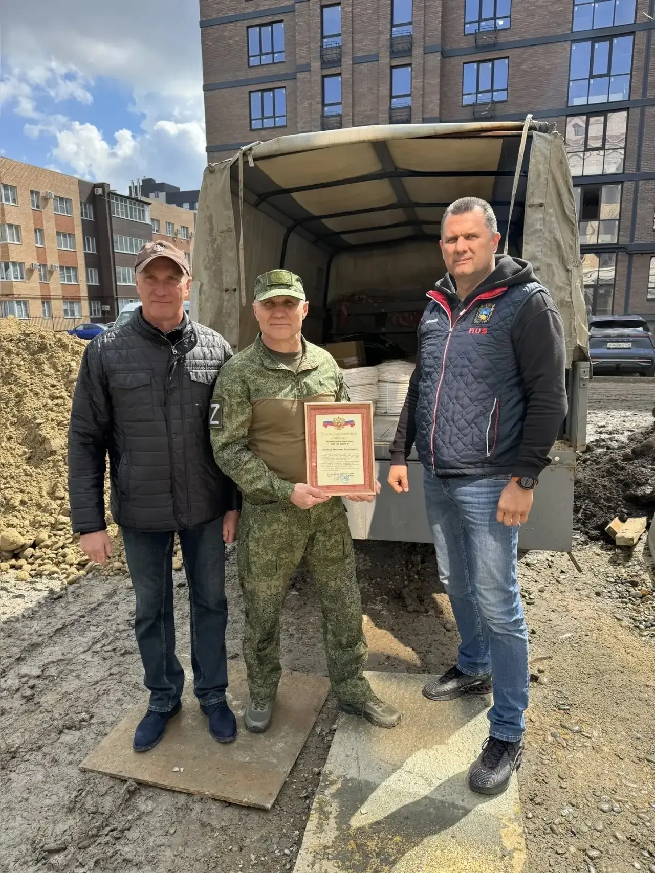 Первый вице-спикер городского парламента Евгений Пятак вместе с соучредителем строительной компании «Союз-4» Вячеславом Неверовым передал бойцам войсковой части 16447 электрокабель и
