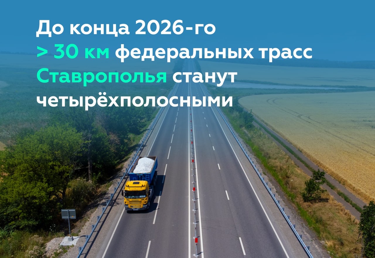 Расширим до четырёх полос > 30 км федералок Ставрополья до конца 2026-го