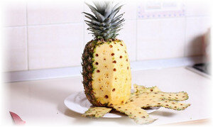 Не забудьте, что сердцевина ананаса несъедобна, ее необходимо убрать, вырезая острым ножом или с помощью ложки.