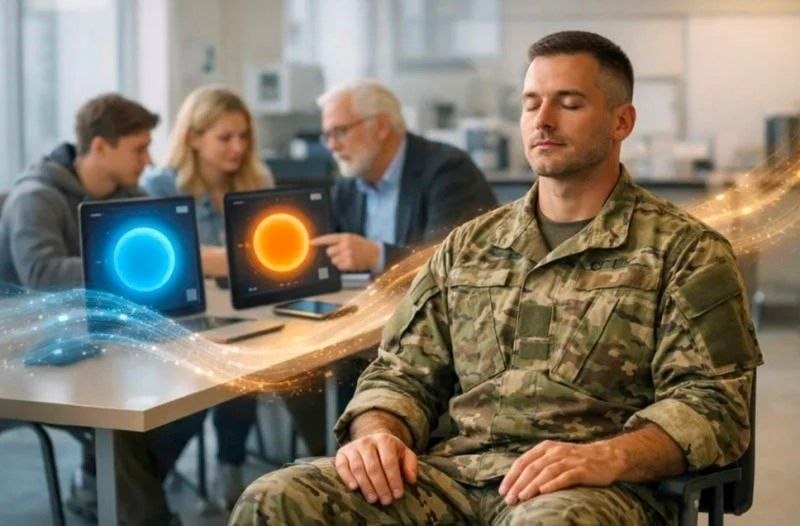 - Разработанное приложение органично дополняет традиционную терапию: оно не заменяет ее, а закрепляет эффект, - отмечают создатели проекта. - В основе методики – тандем цветотерапии и дыхательных упражнений, которые объединяет и персонализирует искусственный интеллект. Нейросеть обрабатывает данные о психоэмоциональном состоянии военнослужащего, на их основе подбирает два цвета, которые начинают пульсировать на экране планшета с индивидуальной частотой. Синхронно с этой пульсацией программа руководит дыхательной гимнастикой человека, подбирая наиболее подходящий для него ритм. Технология позволяет восстановить эмоциональное состояние военнослужащего.