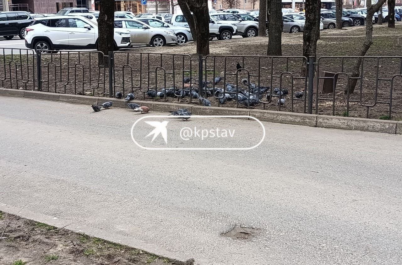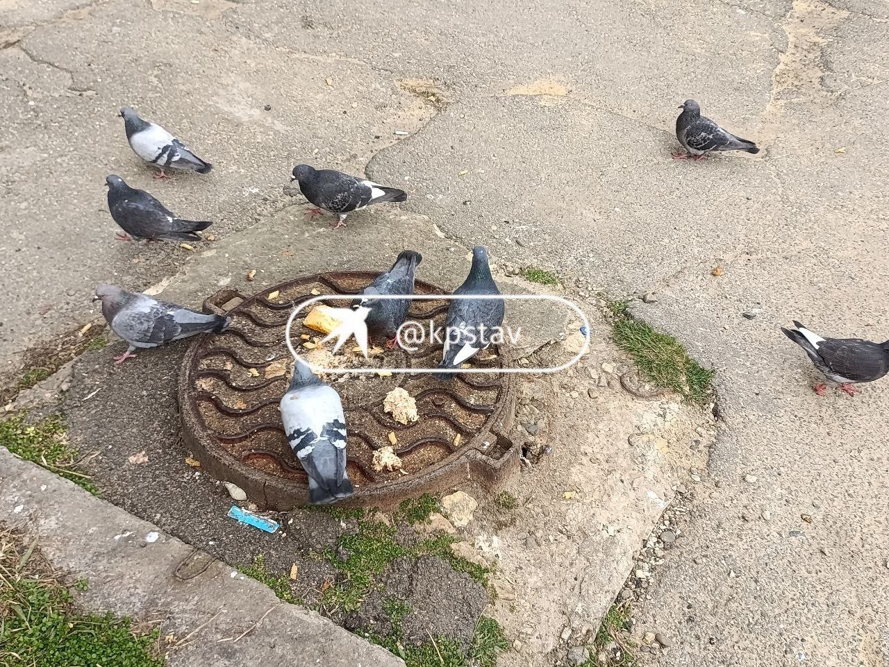 Из разных частей города ставропольцы присылают фотографии с местами сборов пернатых. В некоторых случаях для птиц собирается настоящий фуршет – у тротуаров сердобольные люди разбрасывают объедки, хлеб и зерно.