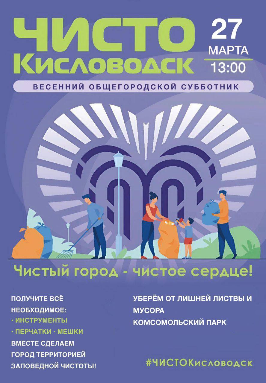 Приглашаем всех жителей и гостей города принять участие в первом в этому году городском субботнике.