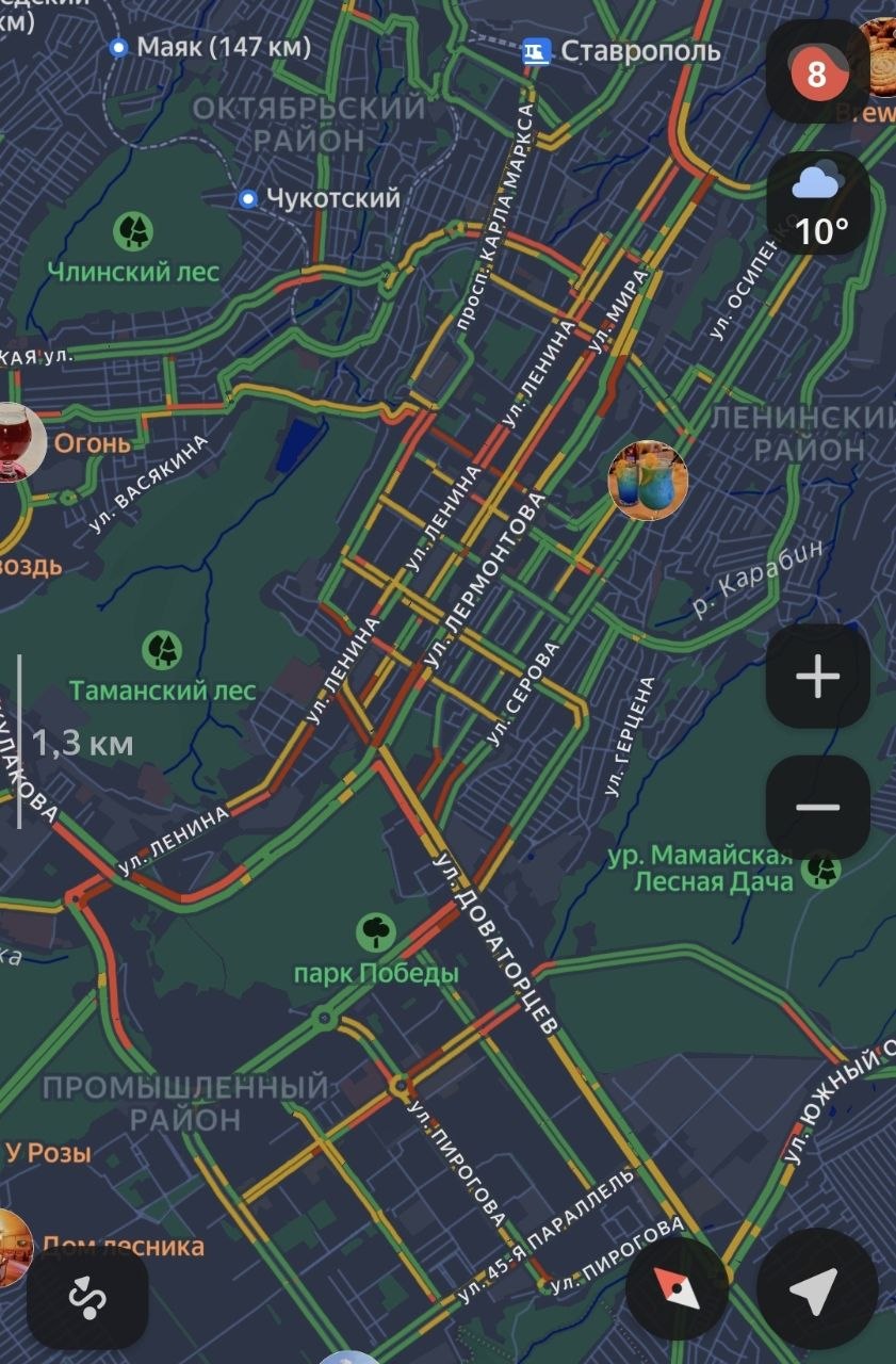 Традиционные пятничные пробки в Ставрополе достигли 8 баллов