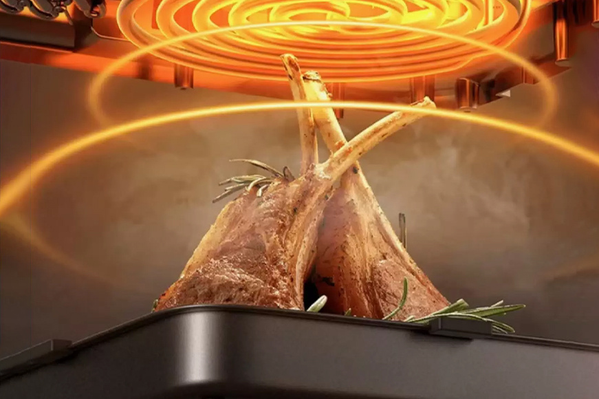 - Равномерное распределение горячего воздуха: потоки воздуха обтекают продукты со всех сторон, обеспечивая равную прожарку как снаружи, так и внутри.