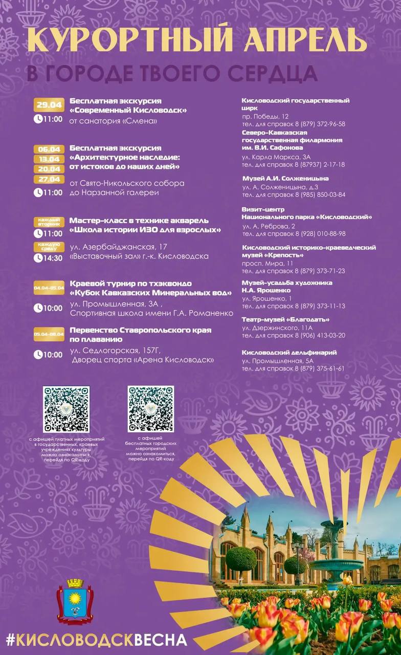Полную афишу бесплатных мероприятий смотрите на сайте:https://prokislovodsk.gosuslugi.ru/dlya-zhiteley/kalendar-sobytiy/afisha.html