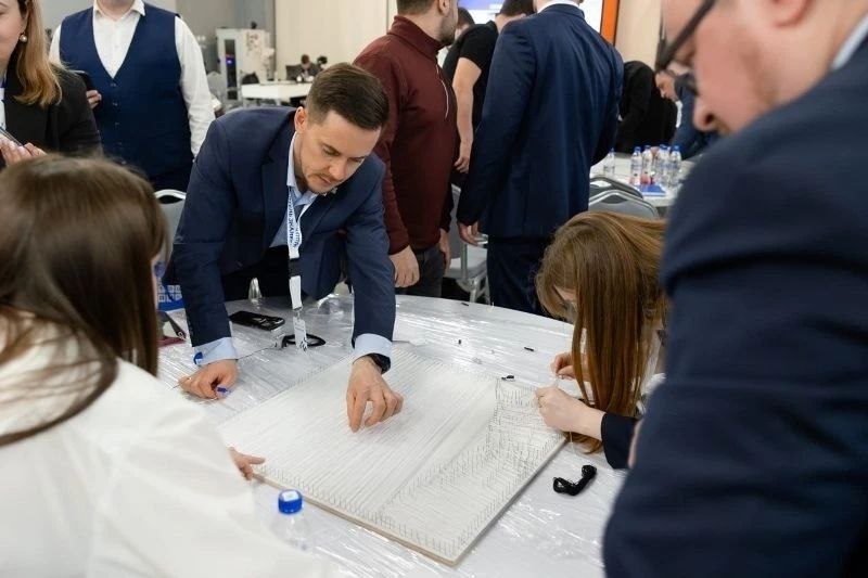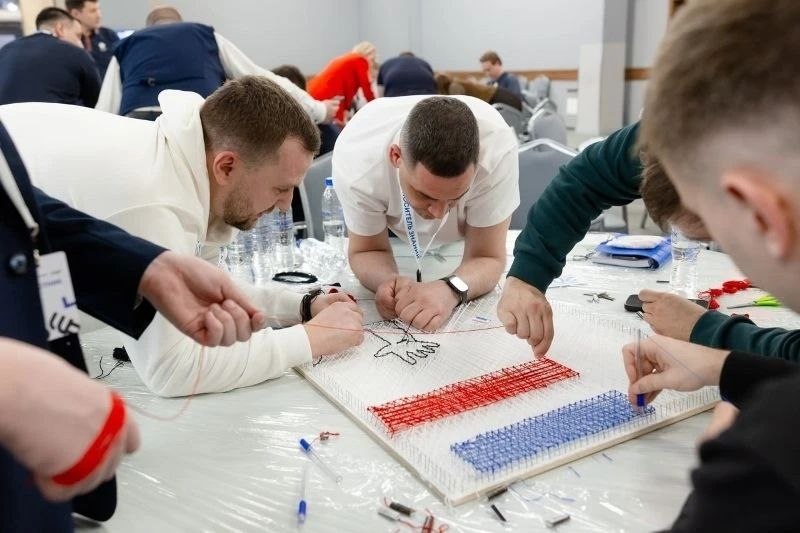 Участники программы «Молодежное парламентское единство» в Центре знаний «Машук» коллективно работали над композицией в технике стринг-арт.