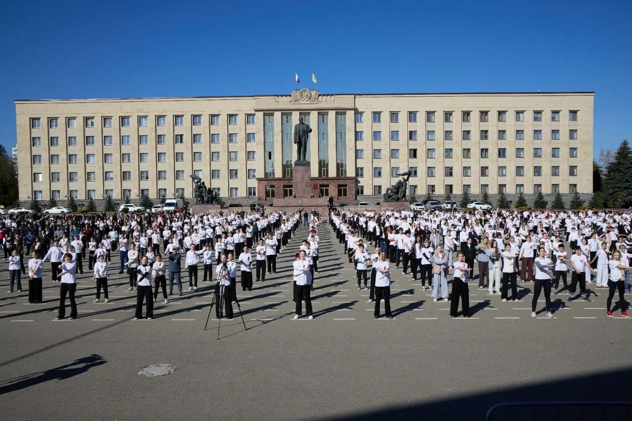 Всемирный день здоровья вместе с учениками ставропольских школ начали с дружной зарядки на площади Ленина.