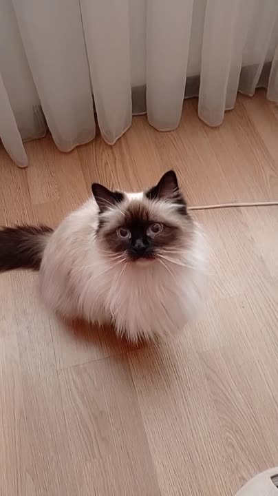 Кошка Жемчужинка профессионально требует подать завтрак.
