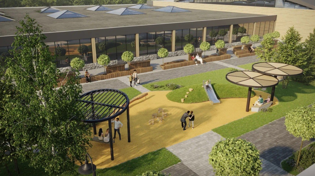детская зона и сухой фонтан;