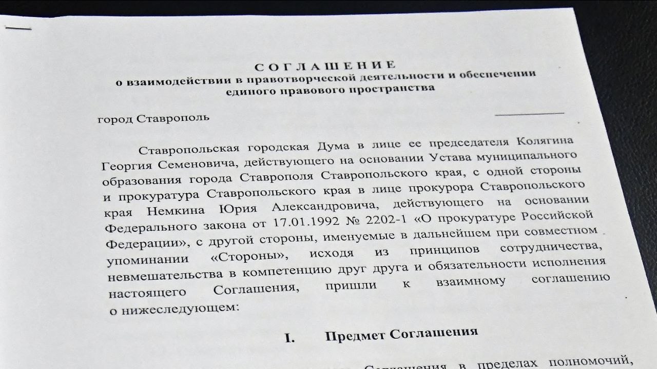 Ставропольская городская Дума и Прокуратура Ставропольского края заключили соглашение о сотрудничестве