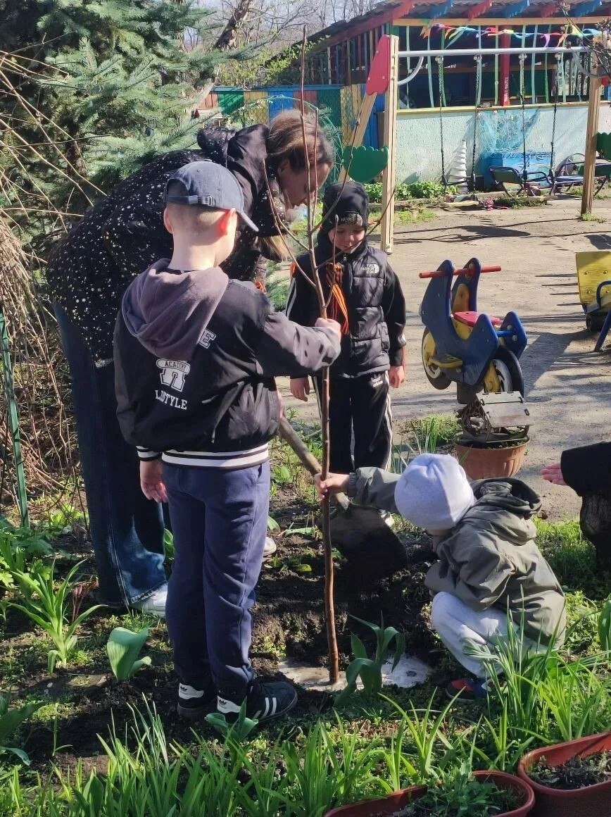 Каждый год к Дню Победы ребята присоединяются к акции - сажают деревья в память о героях Великой Отечественной войны. В этом году на территории сада появились берёза и рябина.