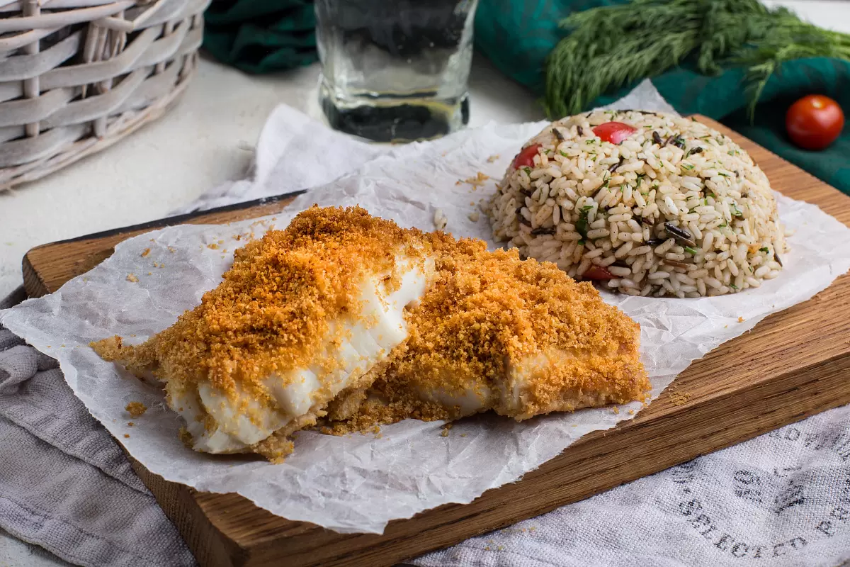 Для любителей рыбы и ярких вкусов эта настраивающая на ужин рецептура станет настоящим открытием. Запеченная треска, обрамленная интересной панировкой из апельсинов и чеснока, в сочетании с золотым и диким рисом — это комбинация, которая порадует даже самых притязательных гурманов.