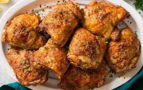 Подготовка бедер: Чтобы куриные бедра вышли идеально хрустящими, важна предварительная подготовка. Промокните кожу бумажным полотенцем для удаления влаги и сделайте несколько надрезов вдоль кости — это обеспечит равномерное приготовление. Натрите бедра специями как снаружи, так и под кожей, чтобы усилить вкус.