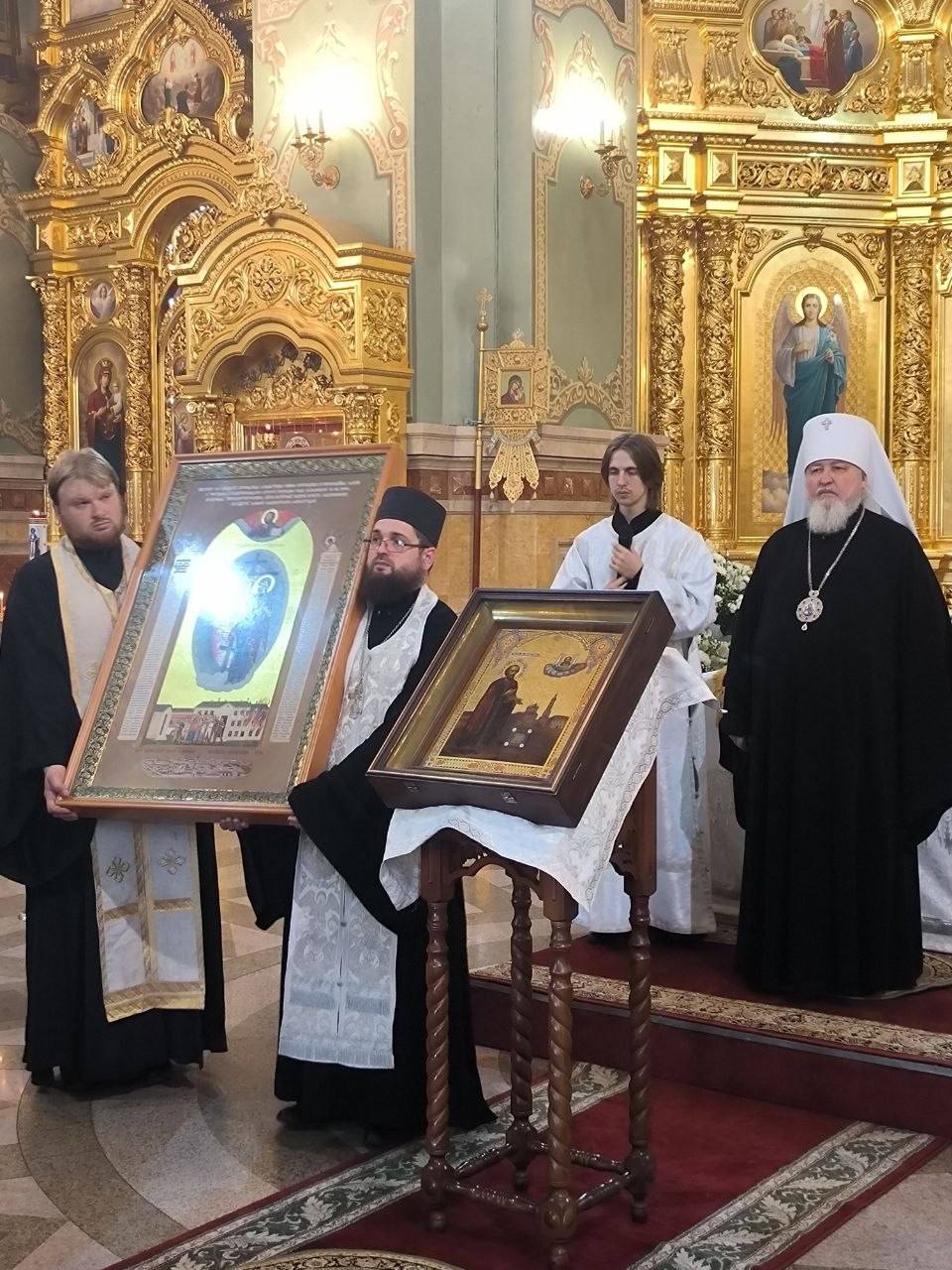 Сегодня в храме встретили Свято-Крестовскую икону Божией Матери и икону с частицей мощей святого благоверного князя Михаила Тверского.