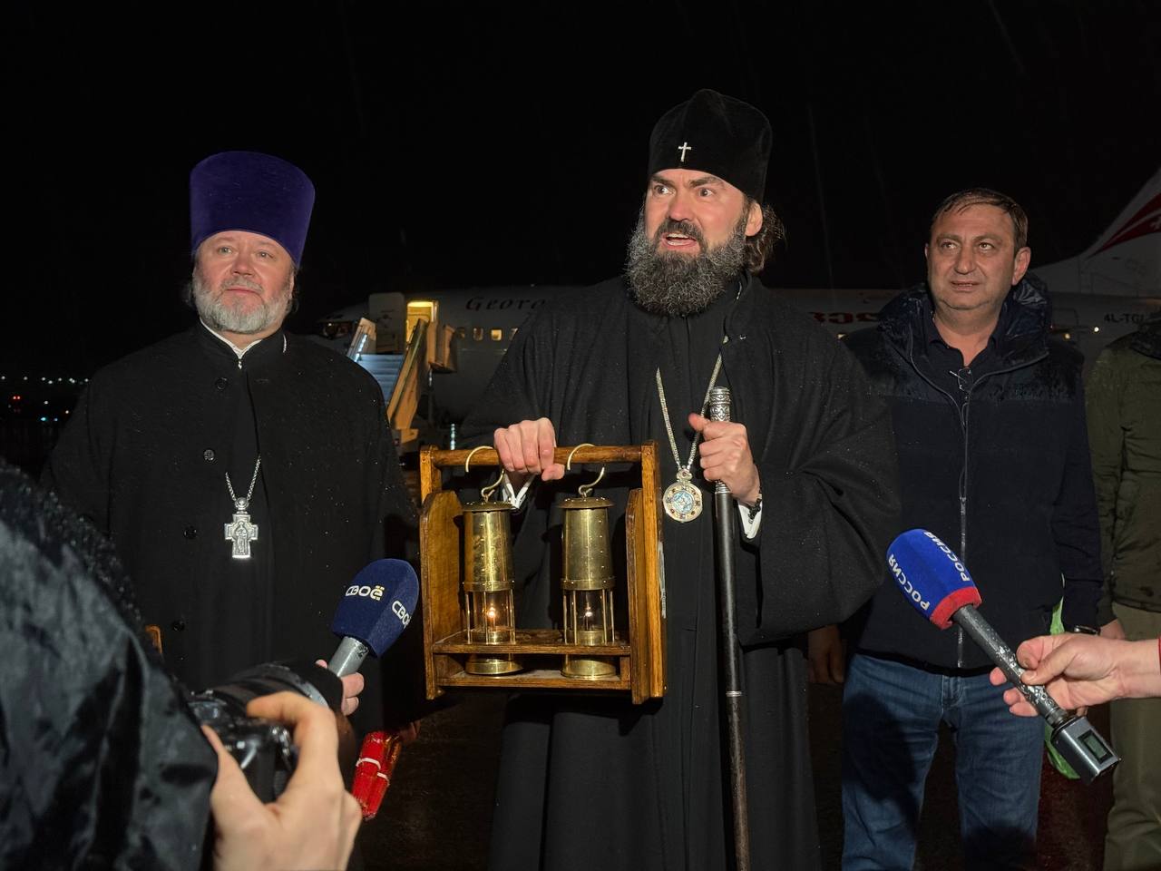 В аэропорту Минеральных Вод встретили Благодатный огонь. Совсем скоро он зажжёт лампады в храмах и церквях Пятигорска, возвещая миру о Воскресении Христовом