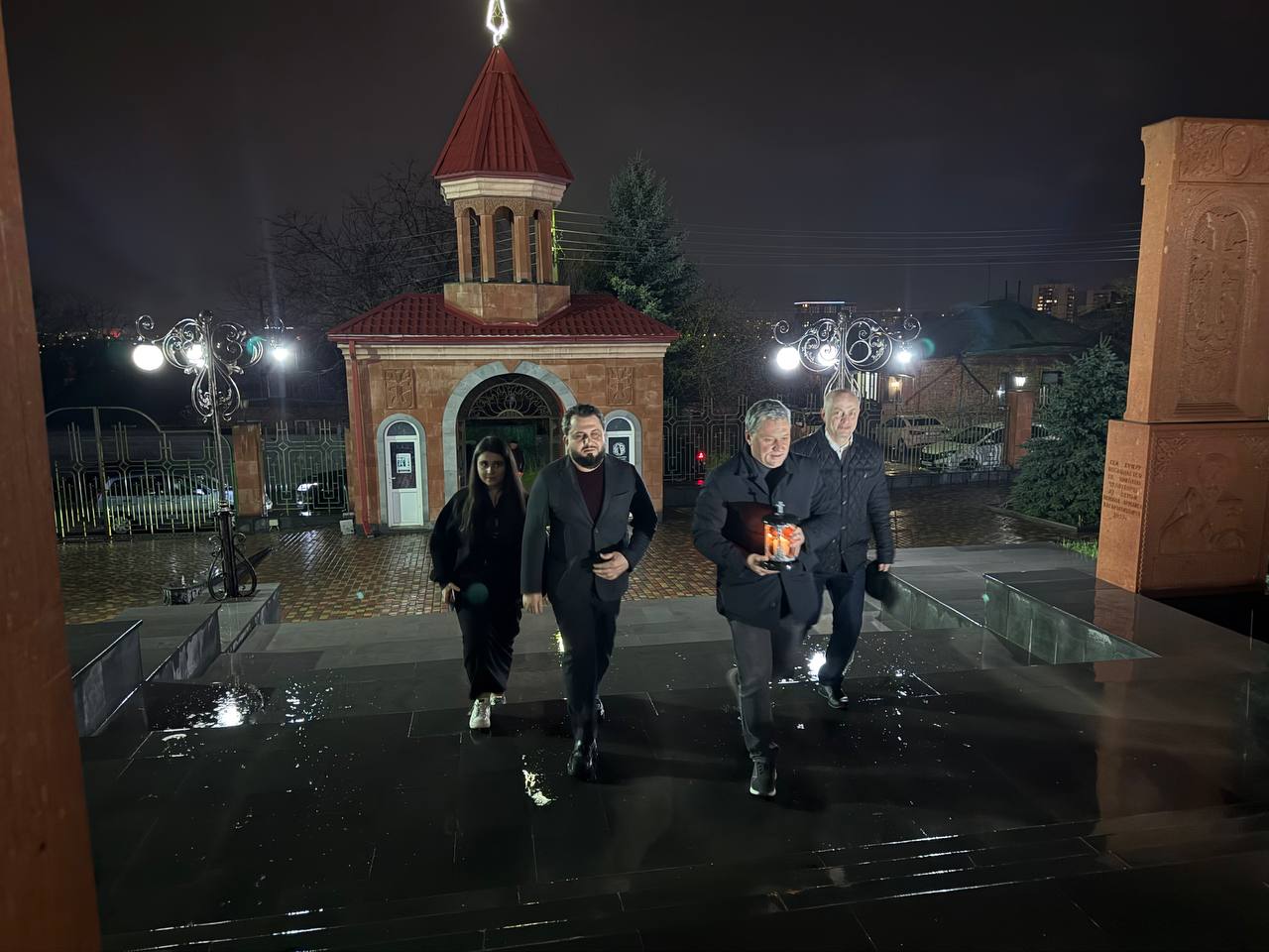 По благословению архиепископа Пятигорского и Черкесского Феофилакта передал Благодатный огонь настоятелю церкви Сурб Саргис Пятигорска Тер Араму Унаняну.