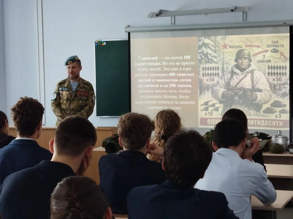 Гости рассказали ученикам о службе в ВДВ: поделились армейскими историями, объяснили важность физической подготовки (ежедневно - зарядка, маршброски, рукопашный бой, полоса препятствий) и раскрыли нюансы воздушнодесантной подготовки: обучение прыжкам с парашютом, проверку снаряжения, командную работу после приземления.
