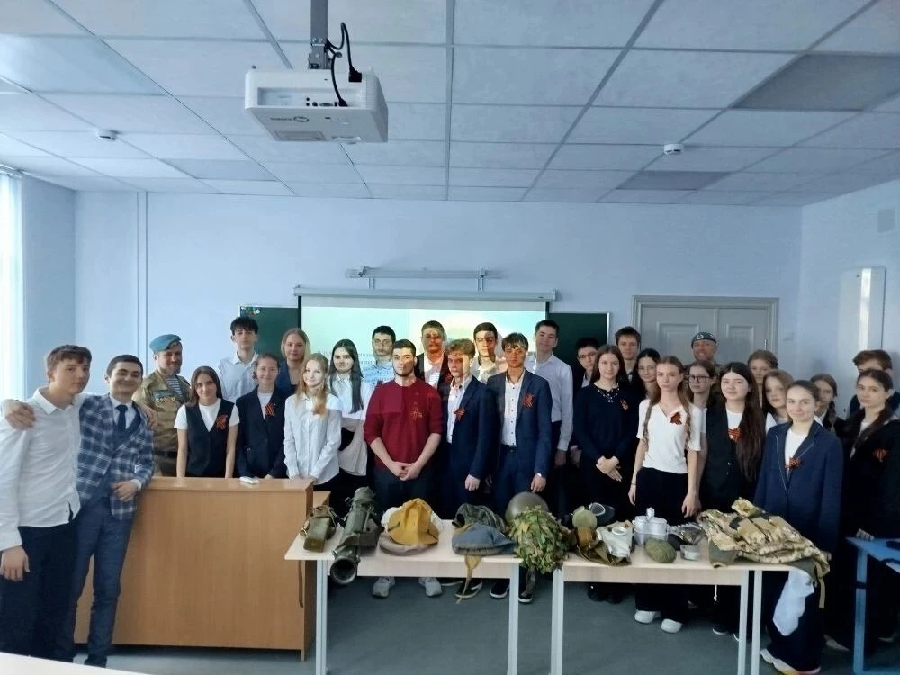 В ессентукском лицее № 6 прошла встреча с активистами Пятигорского отделения МОО «Союз десантников России» - ветераном боевых действий на Северном Кавказе Александром Бондарь (награждён рядом медалей) и младшим сержантом Дмитрием Салмовым - воиномспортсменом, парашютистомотличником.