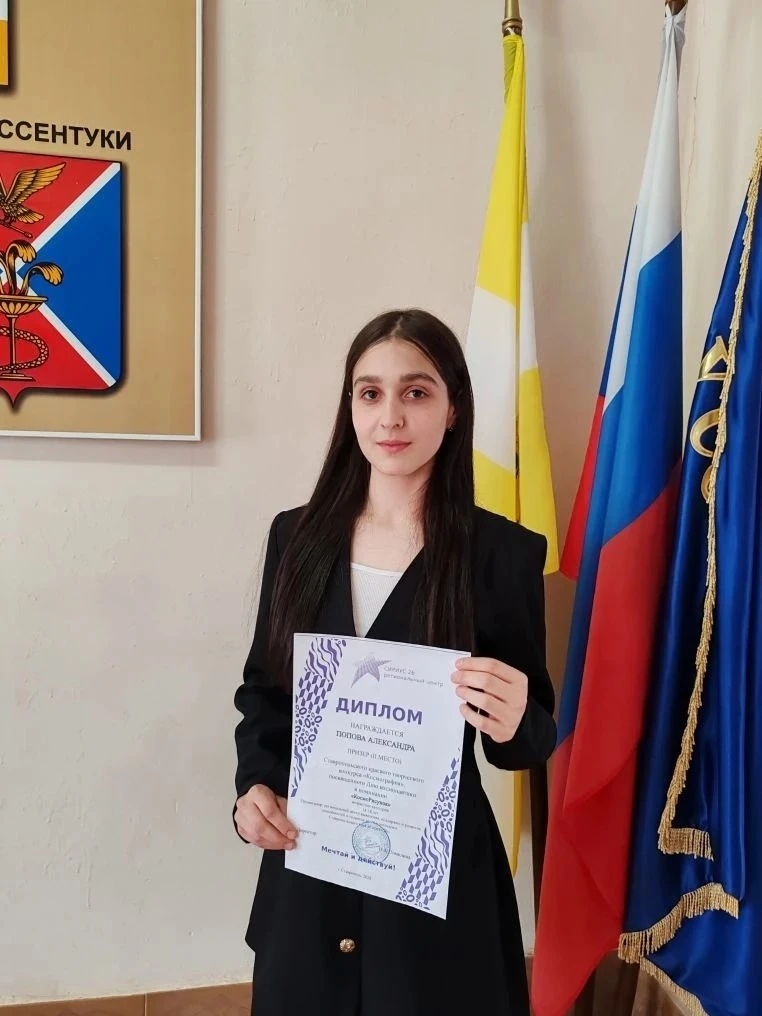 Поздравляем Александру Попову , ученицу 8Б класса МБОУ СОШ № 3 г. Ессентуки, с успешным выступлением на Краевом творческом конкурсе «Космография», приуроченном ко Дню космонавтики.
