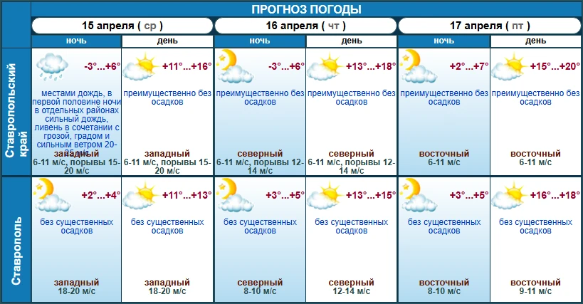В Ставрополе будет чуть прохладнее – до +15 завтра и до +18 в пятницу. Осадков при этом ни в городе, ни в крае не ожидается.