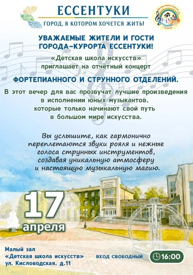 Приглашаем на отчётный концерт фортепианного и струнного отделений!