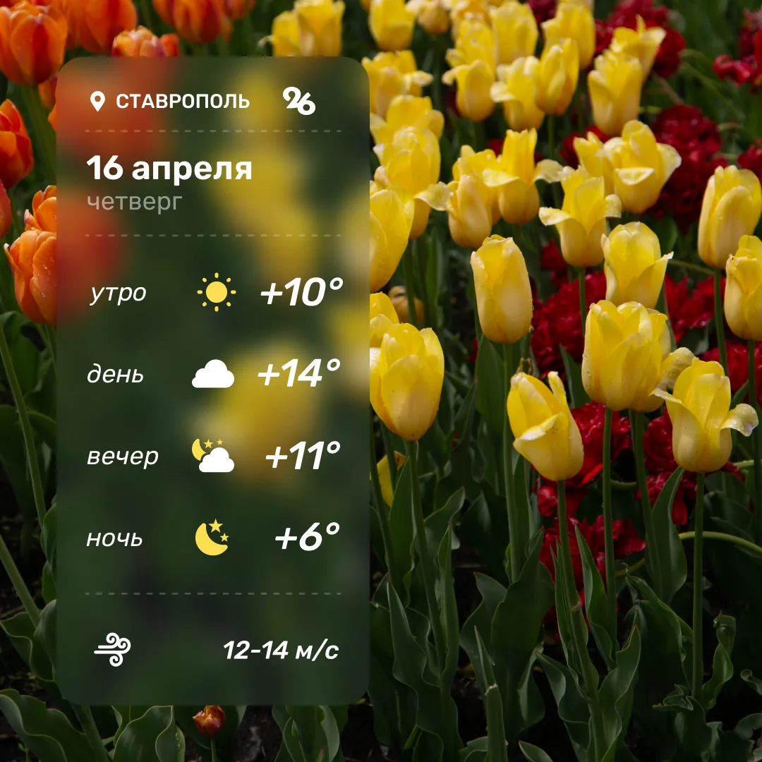 Владикавказ — до +15Грозный — до +18Магас — до +16Махачкала — до +19Нальчик — до +16Пятигорск — до +16Ставрополь — до +14Черкесск — до +15Подпишись на ТАСС/Кавказ в Max