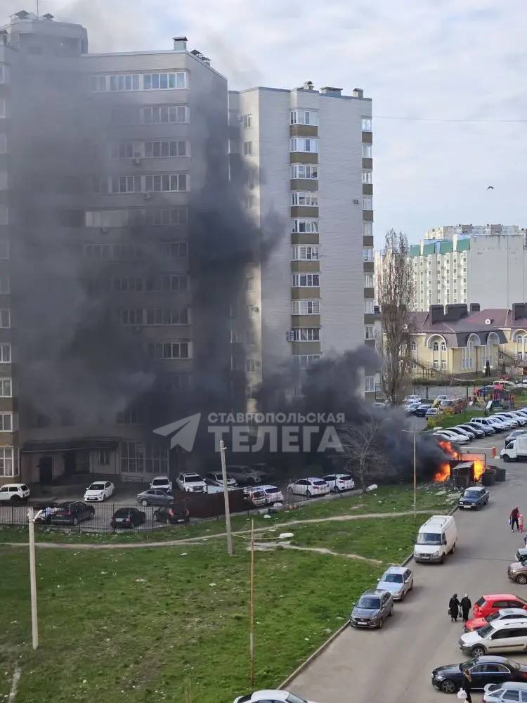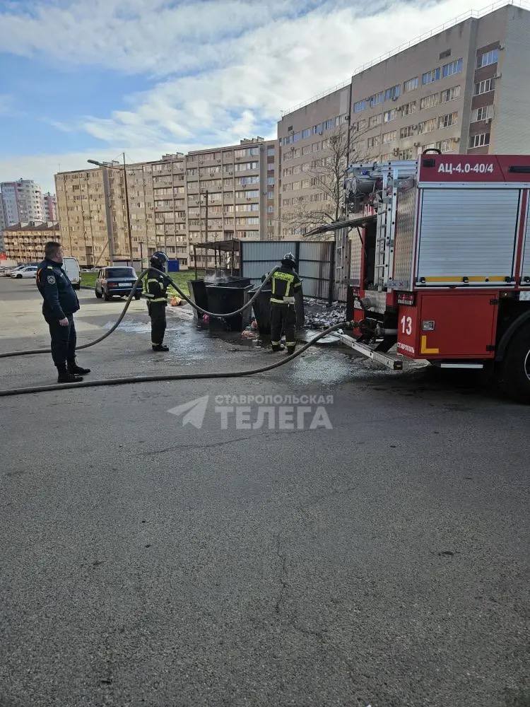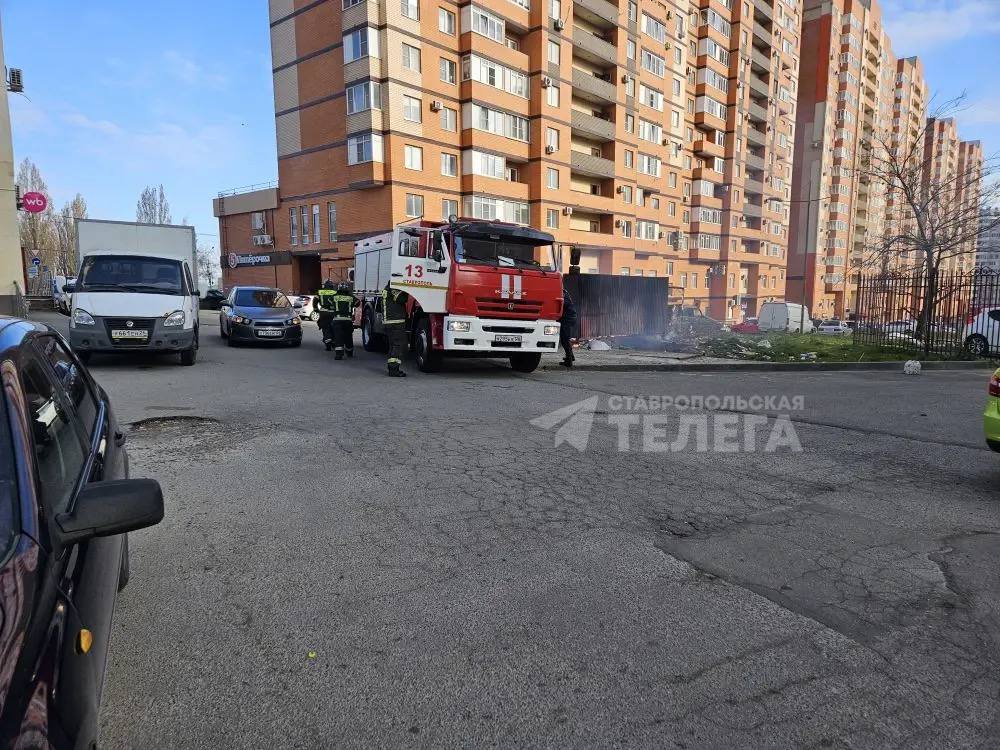 На проспекте Кулакова в Ставрополе этим утром загорелась мусорка.