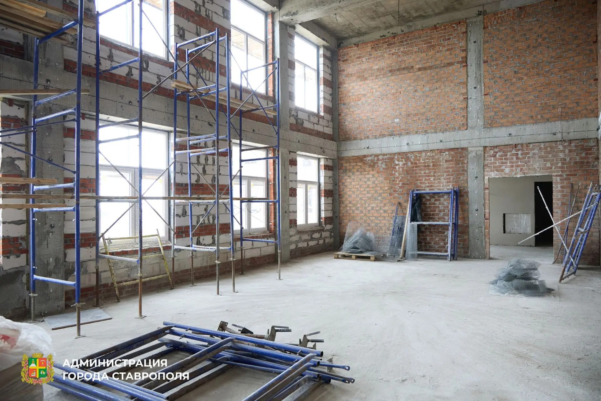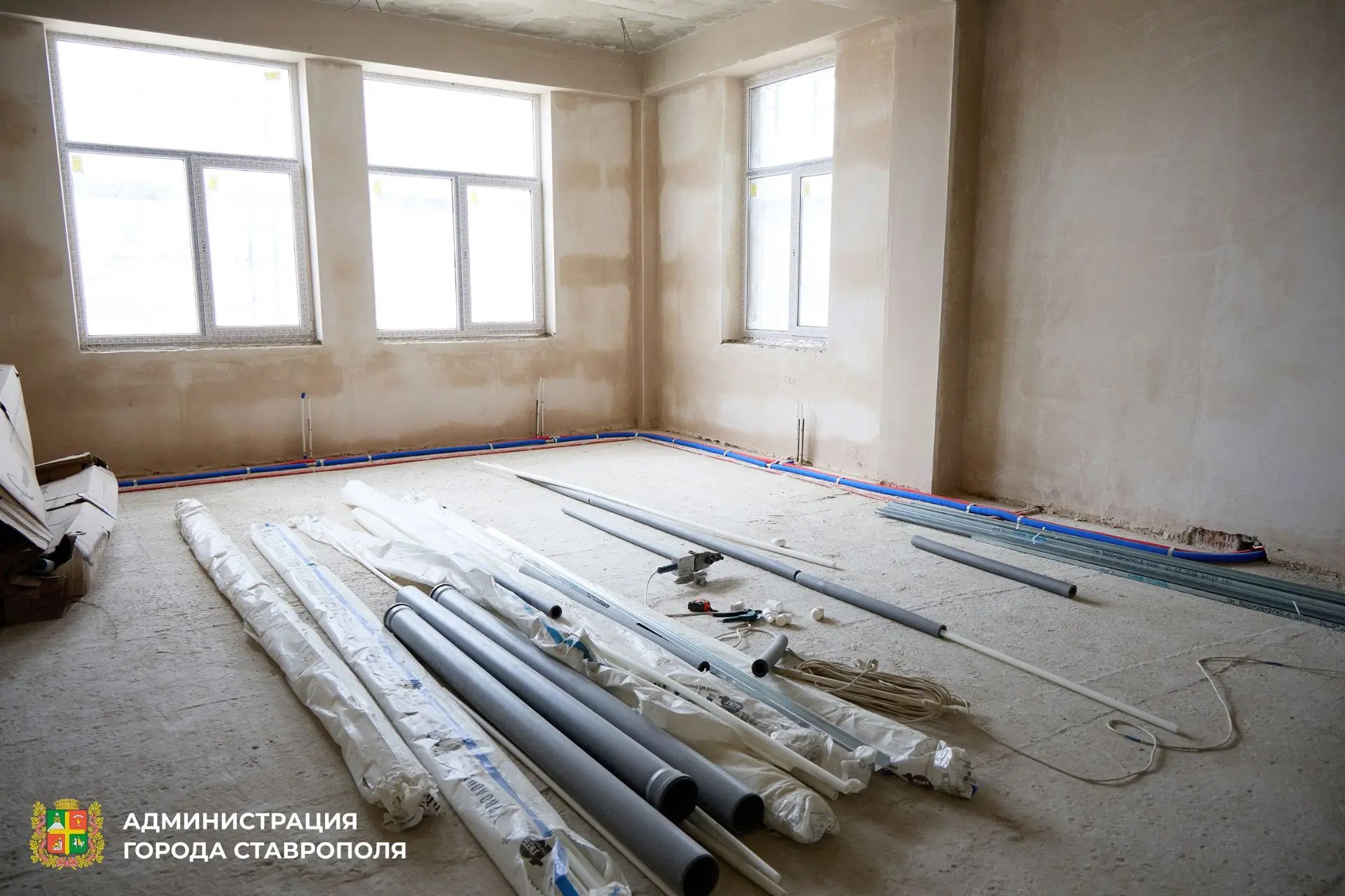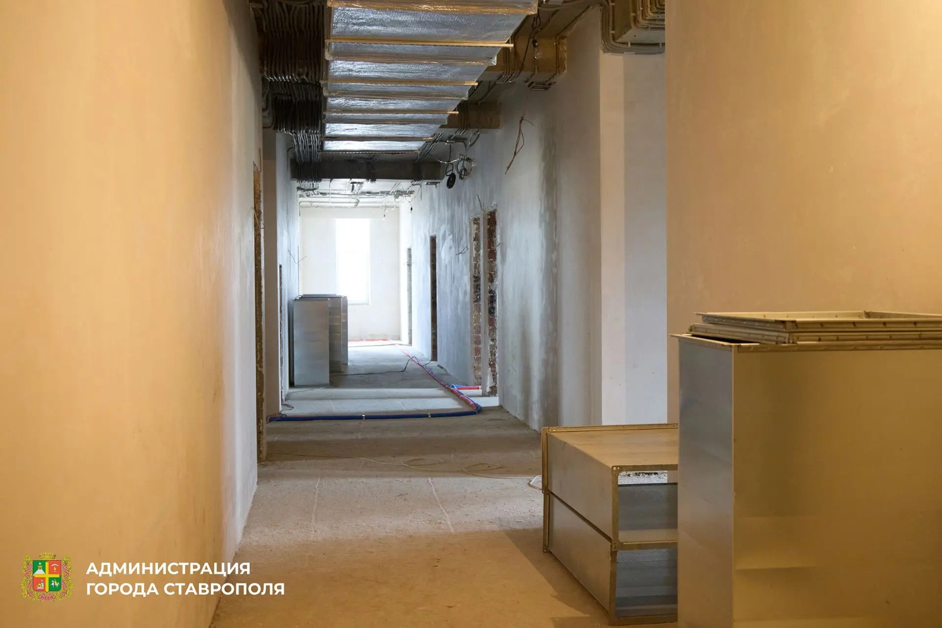 — Параллельно рабочие штукатурят стены, прокладывают внутренние инженерные сети: водопровод, канализацию, отопление, вентиляцию, электрику. Началось утепление фасада, на территории уже благоустраивают игровые площадки, — рассказал глава Ставрополя Иван Ульянченко.