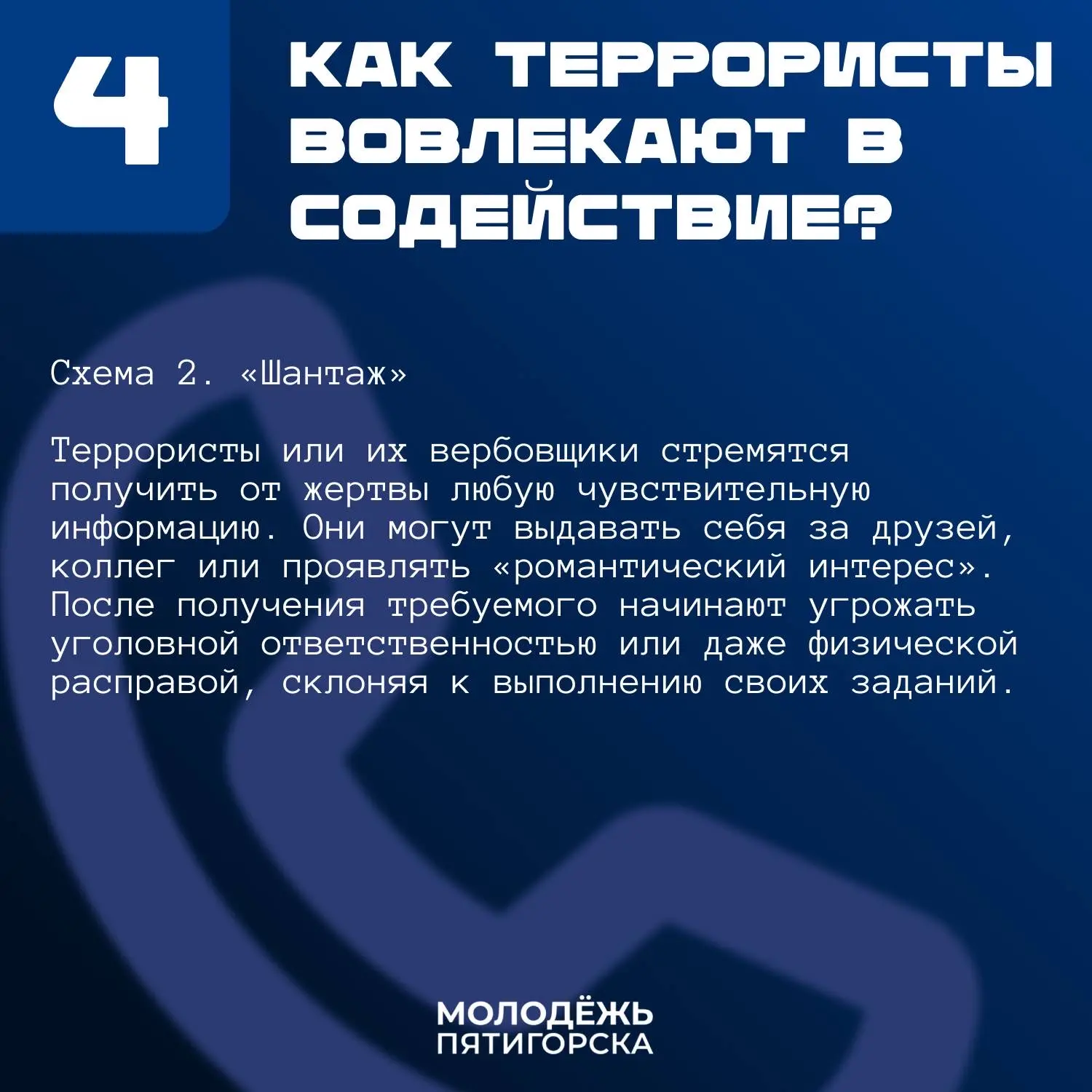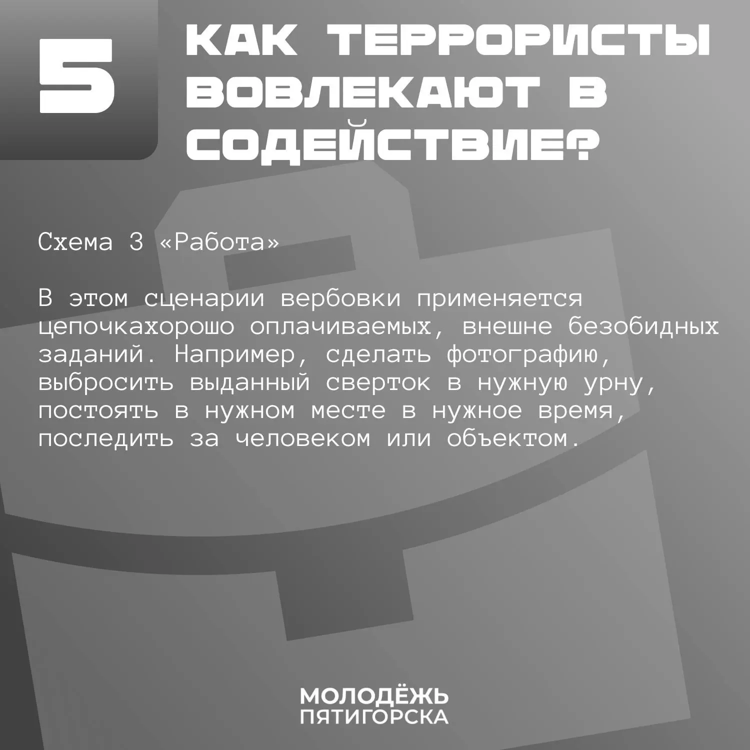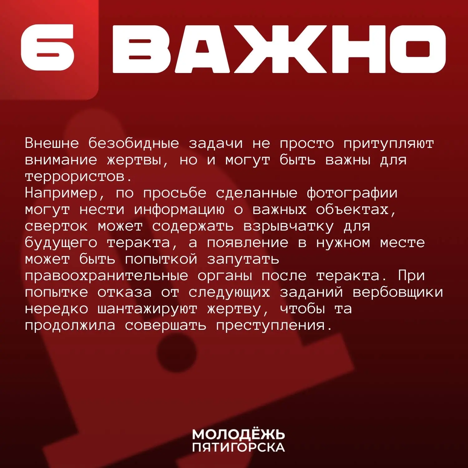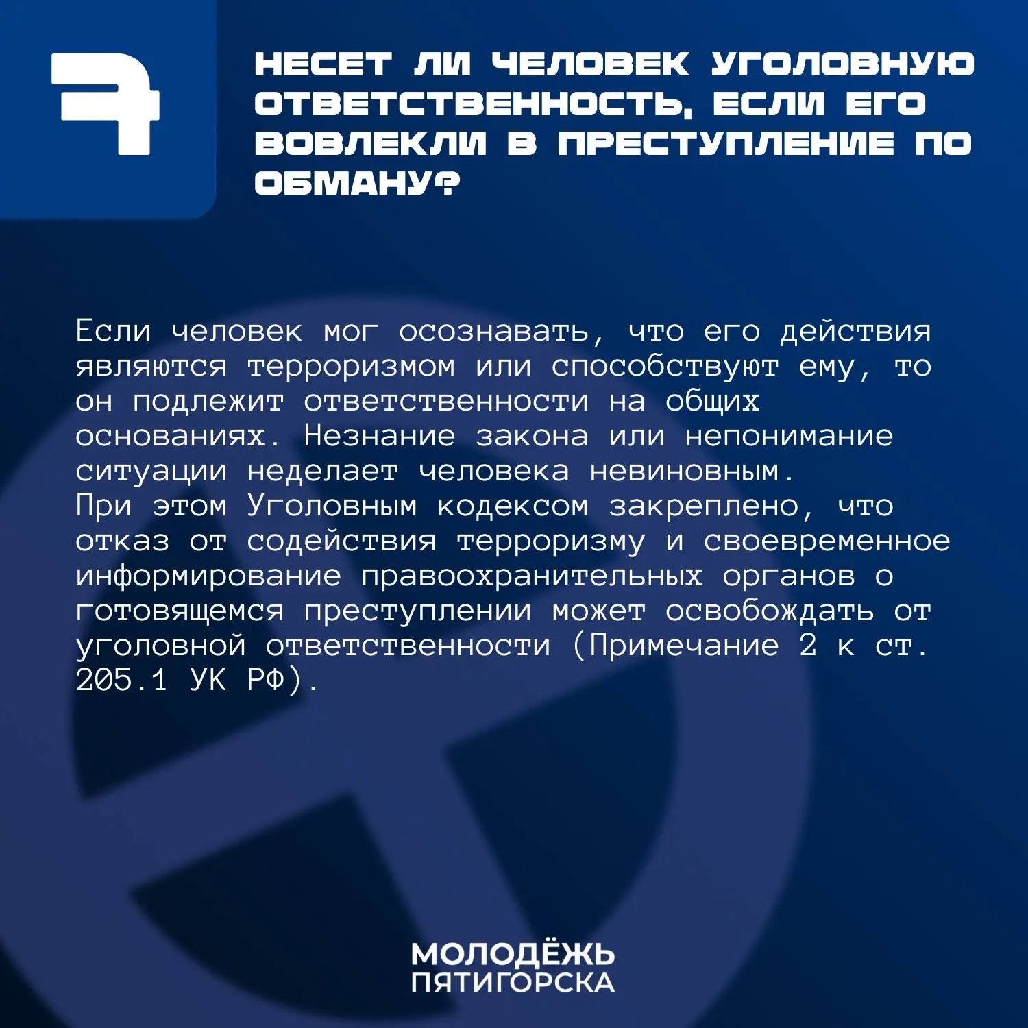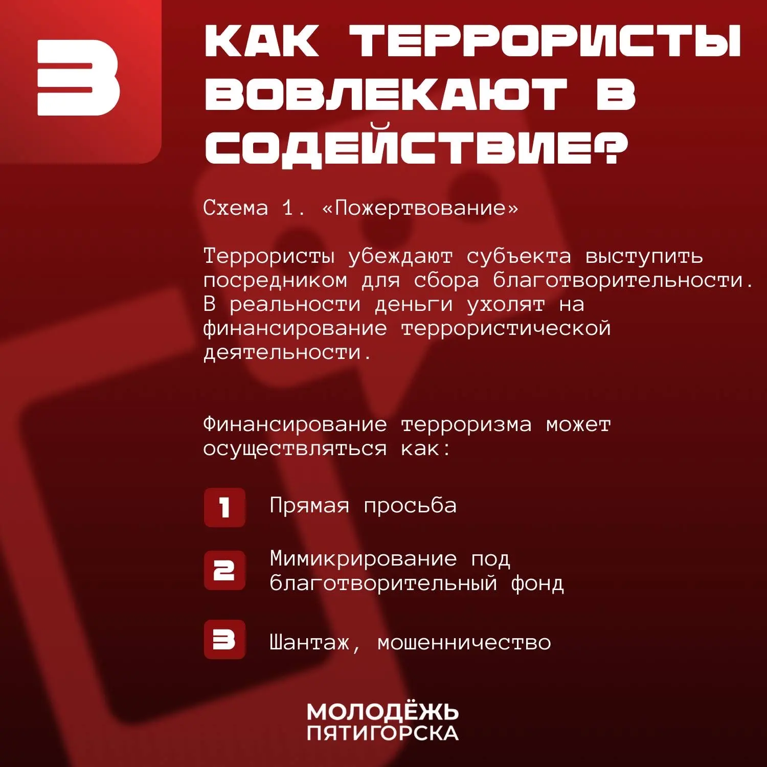 Не всегда понятно, где безобидное действие превращается в нарушение закона, поэтому команда молодёжи Пятигорска подготовила карточки, где изложены основные схемы вовлечения и возможные риски.