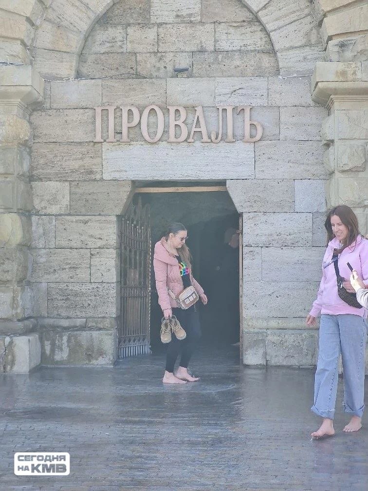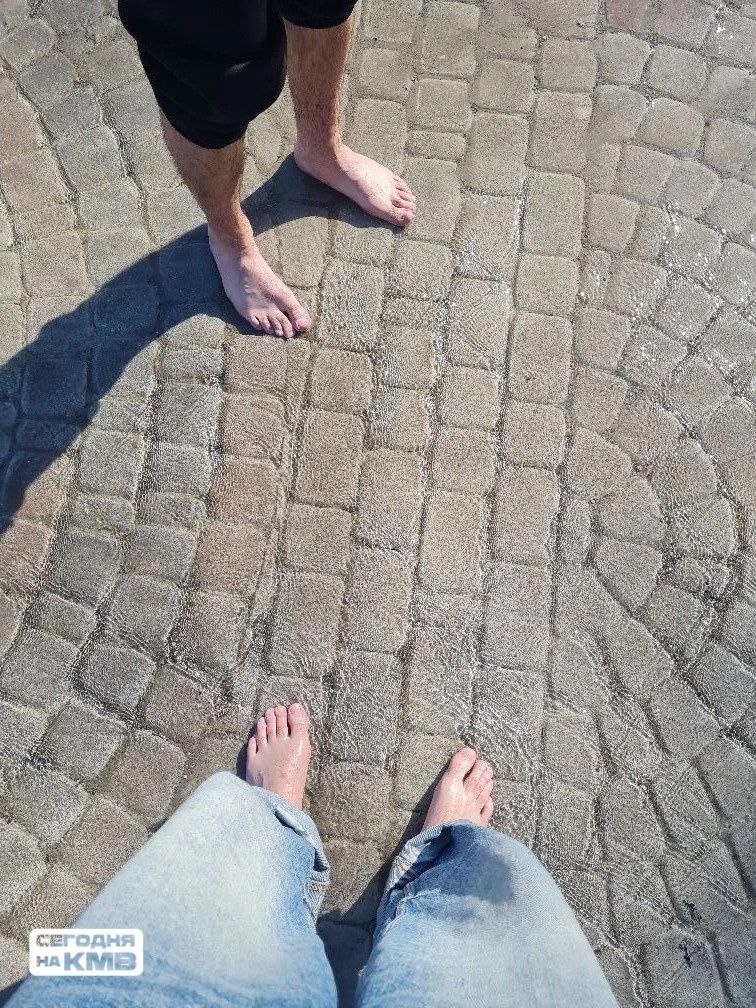 В Пятигорске на площади перед Провалом неожиданно появился «фонтан» — вода начала пробиваться прямо из-под тротуарной плитки.