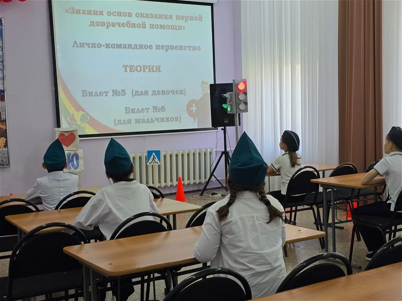 Участники проверили знания ПДД через тестирование и решение ситуационных задач, а также прошли испытания по оказанию первой помощи.