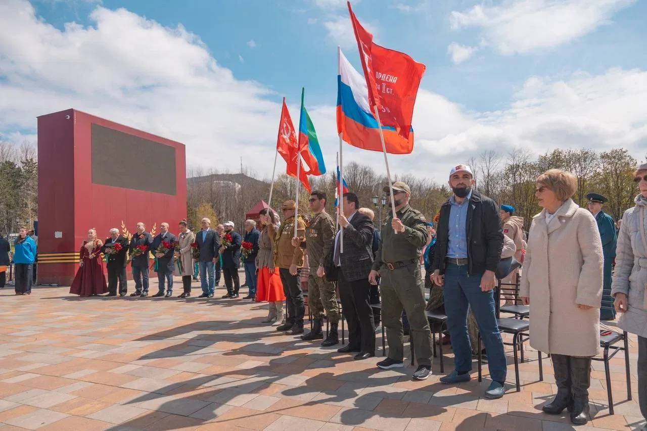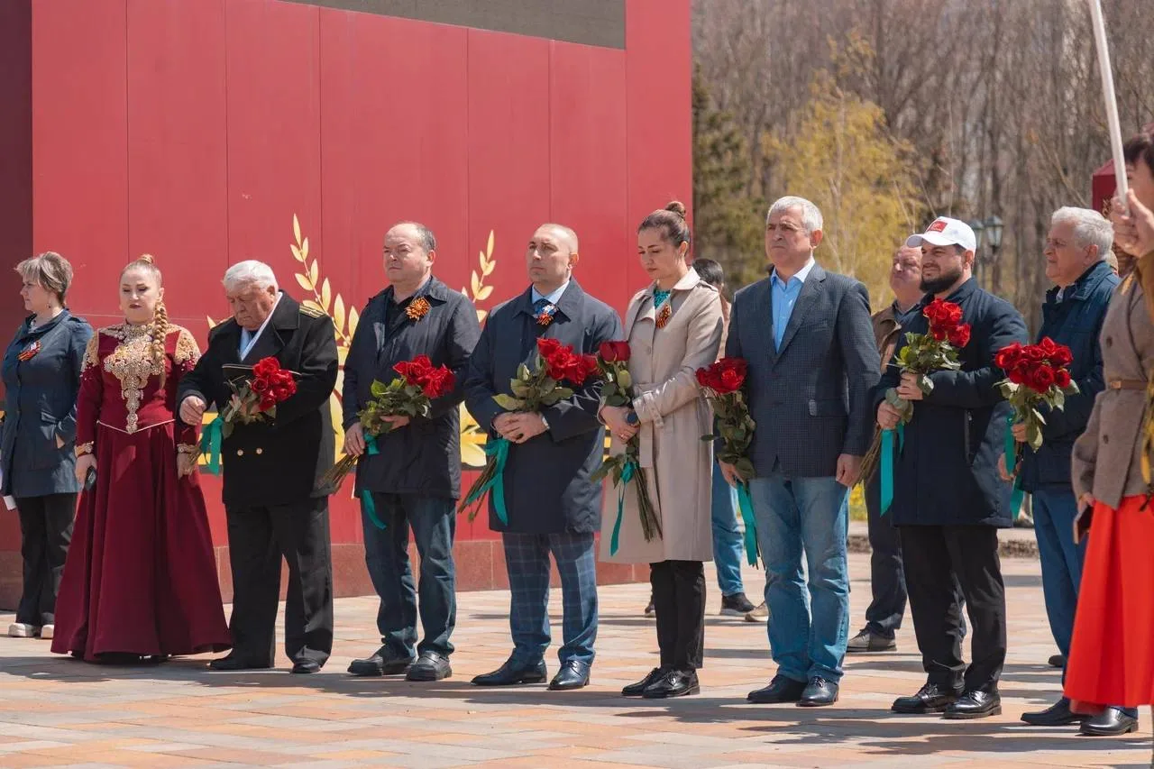 Встретили почетных гостей представители администрации и Думы Пятигорска, актив молодежи, представители городского Совета ветеранов, юнармейцы Поста №1.