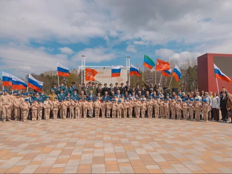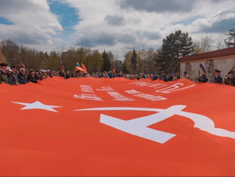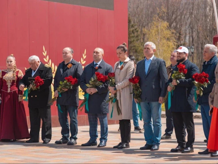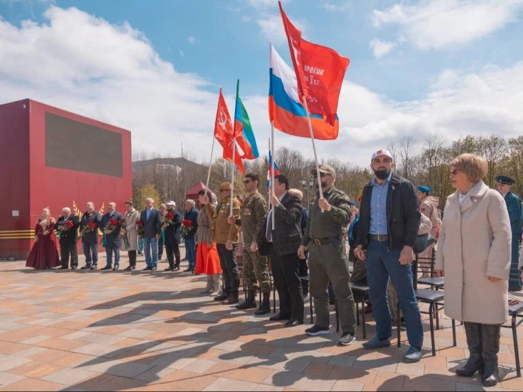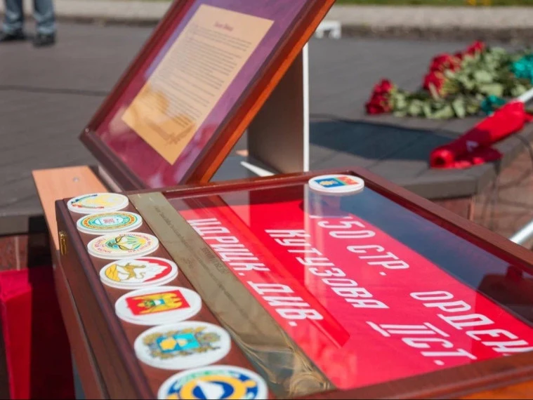 Также сегодня в Пятигорск прибыла делегация из Волгоградской области, которая привезла памятную копию Знамени Победы.