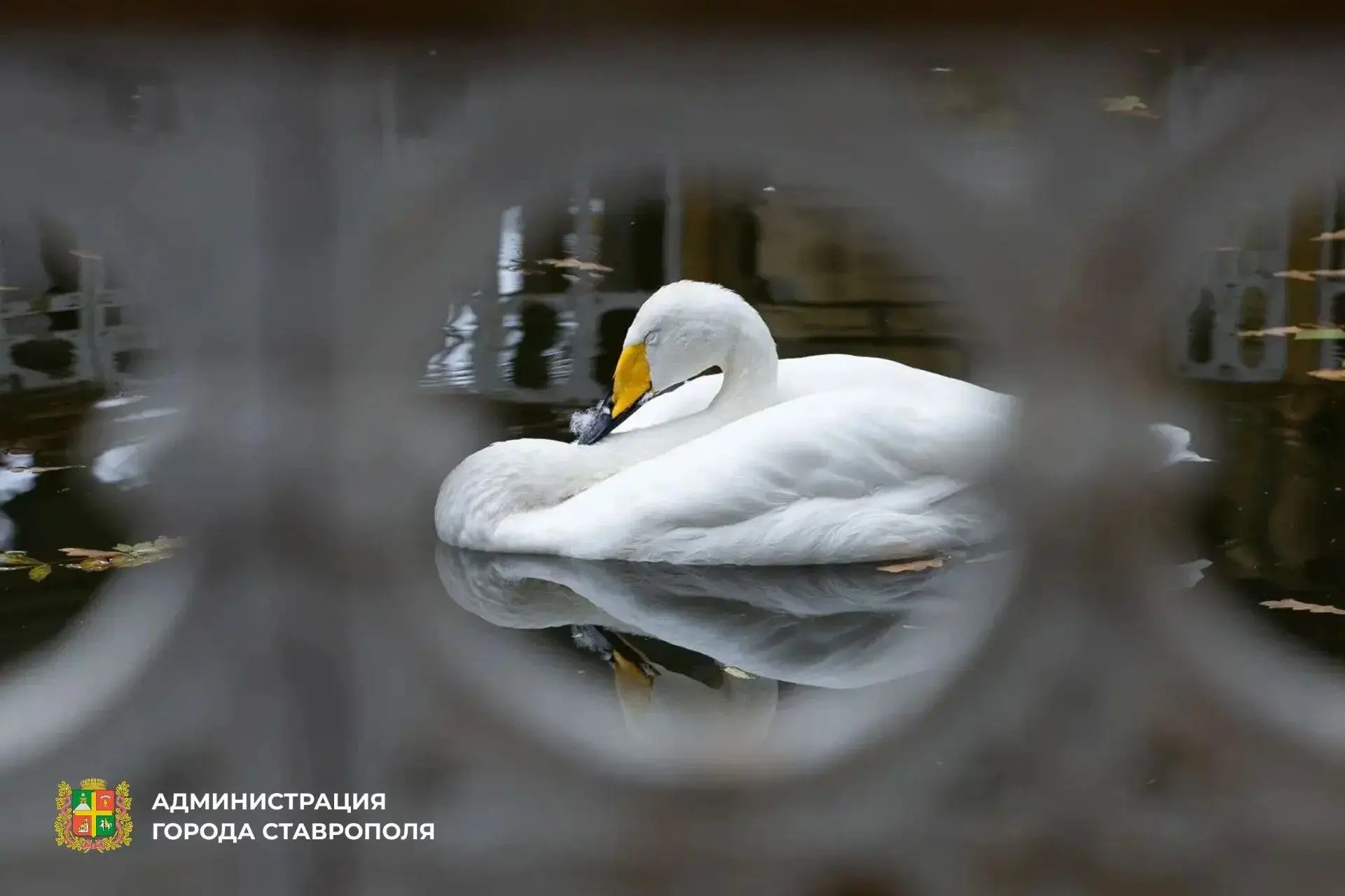 Пара белых лебедей вернулась в Центральный парк Ставрополя после зимовки.