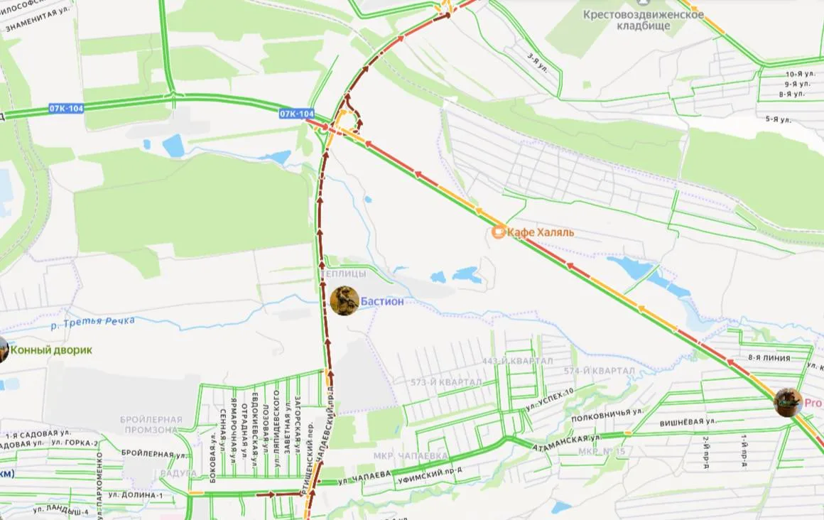 По Чапаевскому проезду (Михайловское шоссе - выезд из Ставрополя) образовалась гигантская пробка