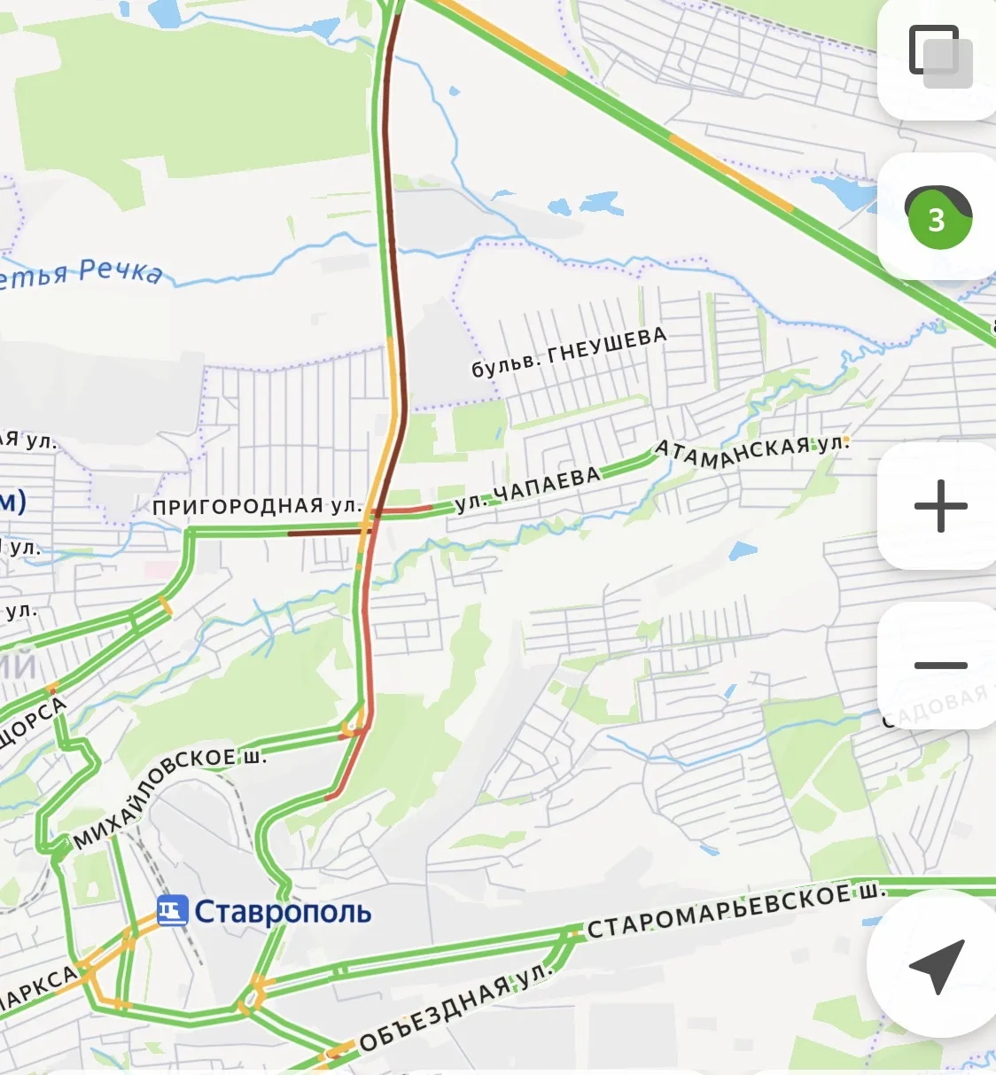 Согласно данным «Яндекс. Карты», затор наблюдается по Чапаевскому проезду. Интервалы движения автобусов №36 и №40м, которые едут до Крестовоздвиженского кладбища, временно увеличены.