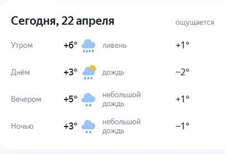 Один источник пророчит на 22 апреля днем всего +3 градуса, другой обещает +10 градусов.