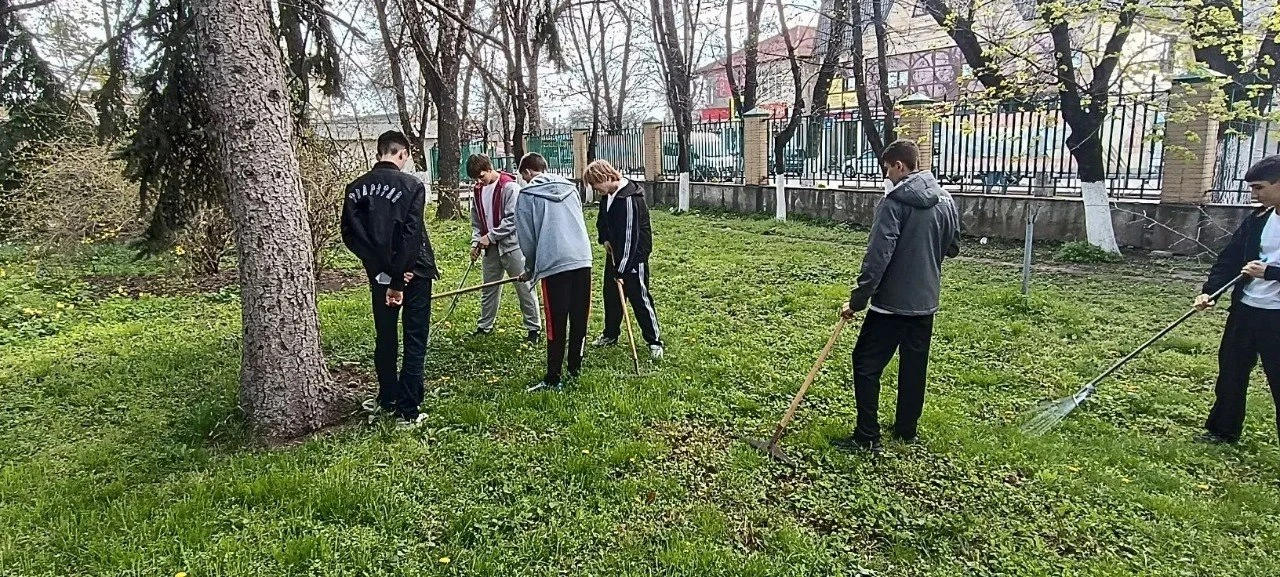 Ученики школы № 3 города Ессентуки приняли участие в трудовом десанте по очистке территории школы.