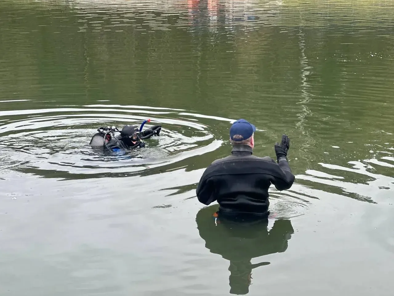 К работе приступили водолазы, которые проводят очистку акватории.