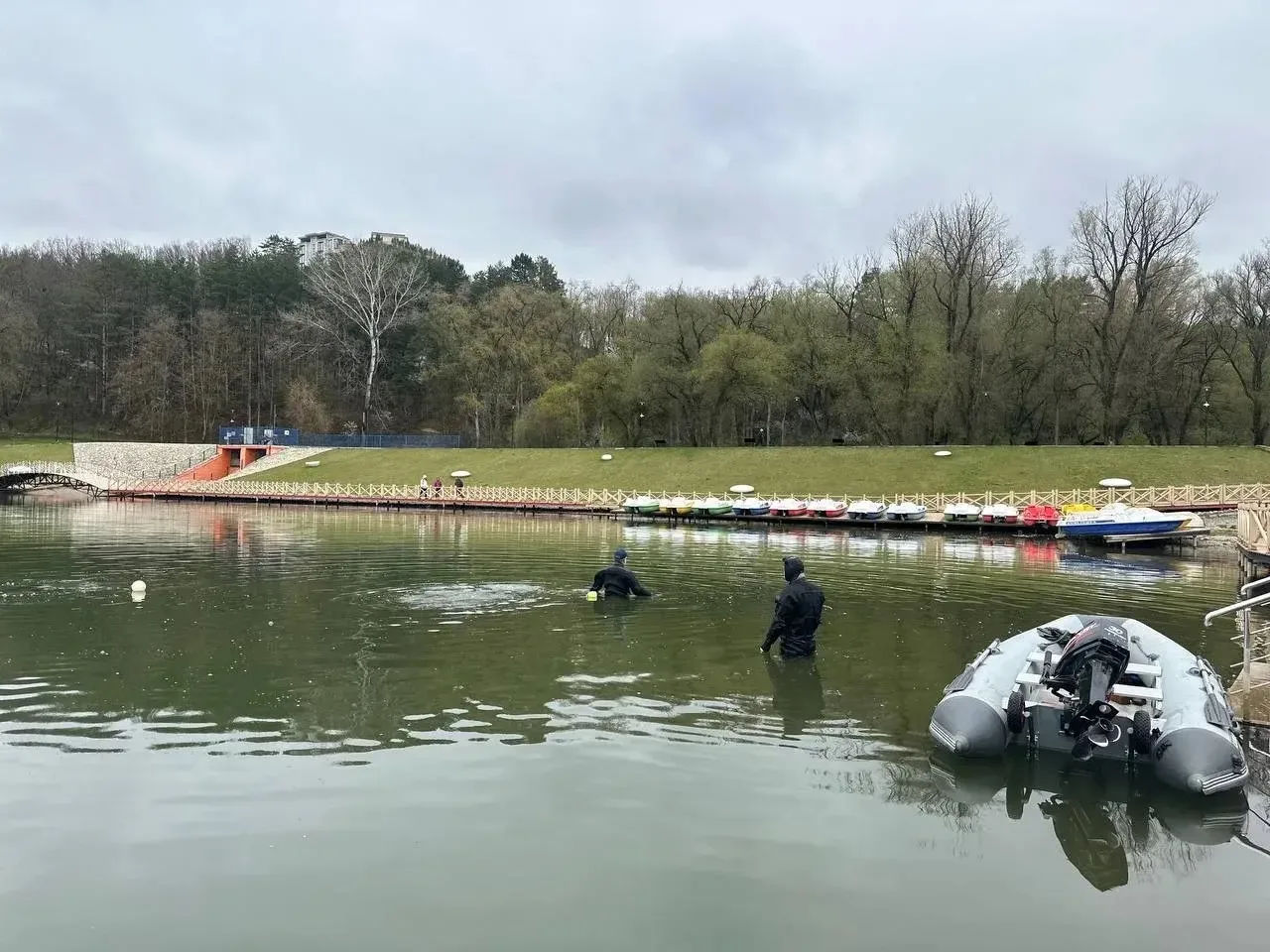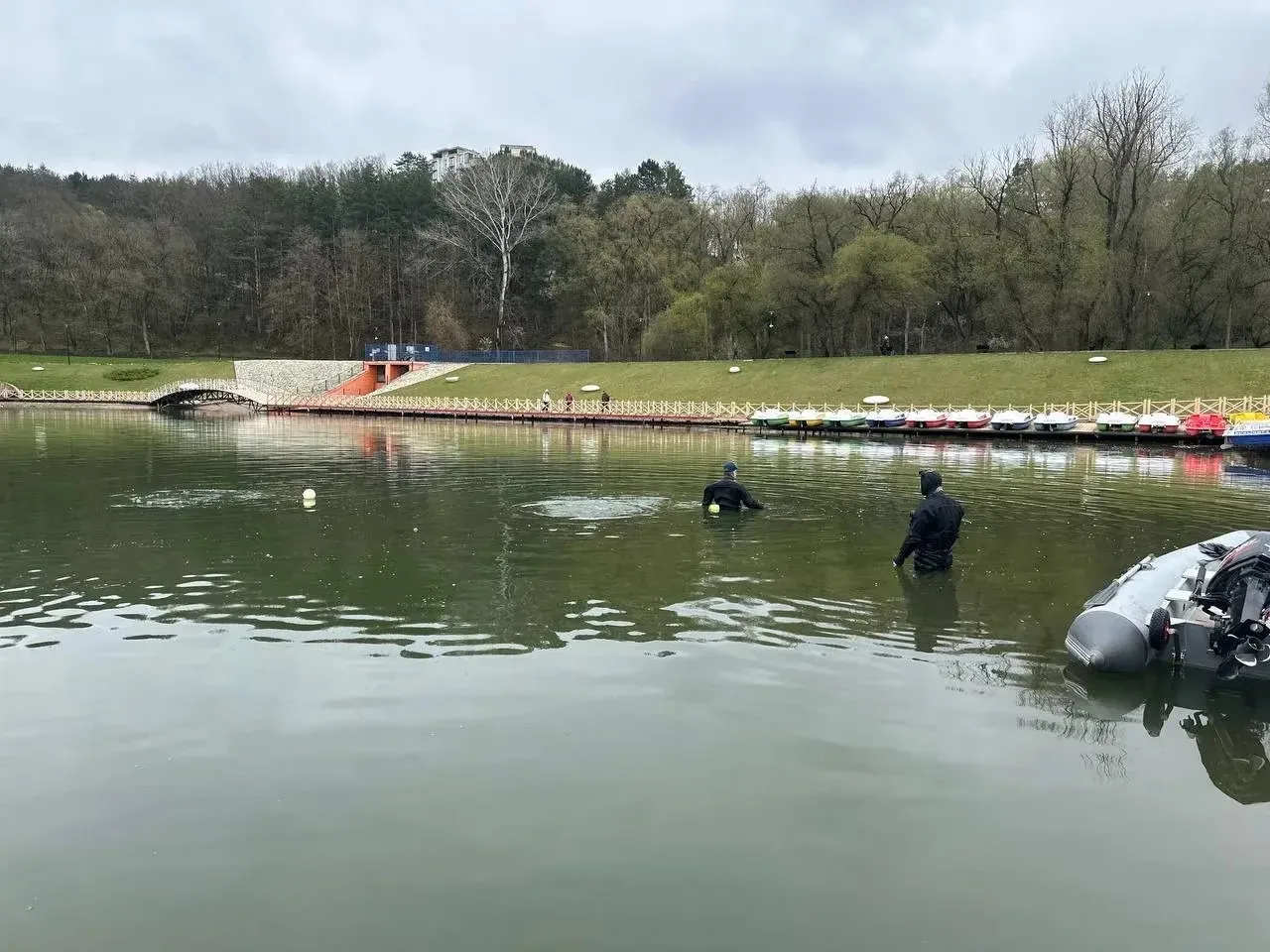 Прямо сейчас водолазы очищают акваторию. Со дна уже подняли пакеты, отломанные перила, сходни, осветительные крышки с декоративных ограждений, а еще связки с рыболовными крючками.