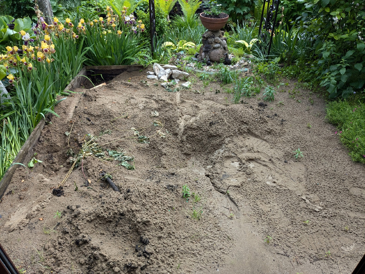 Соседские дела также внесли свою лепту в реконструкцию сада. Не оставляя за собой мусора, успели пересадить нимфеи, которые ели ждали своего часа на улице. Эта работа не обошлась без забавных ситуаций, вылавливая горшки из ледяной воды, но все прошло успешно благодаря помощи родственников.