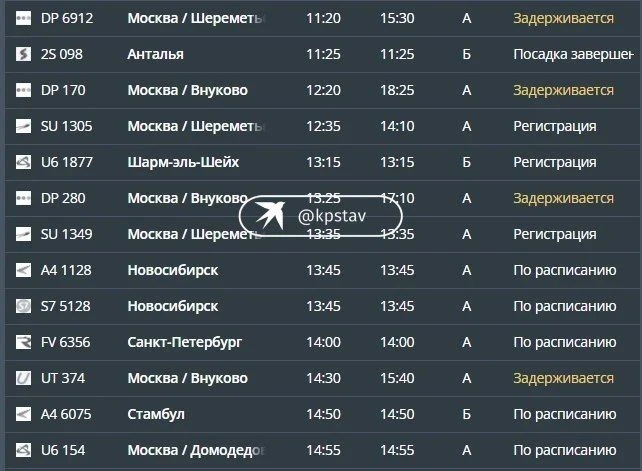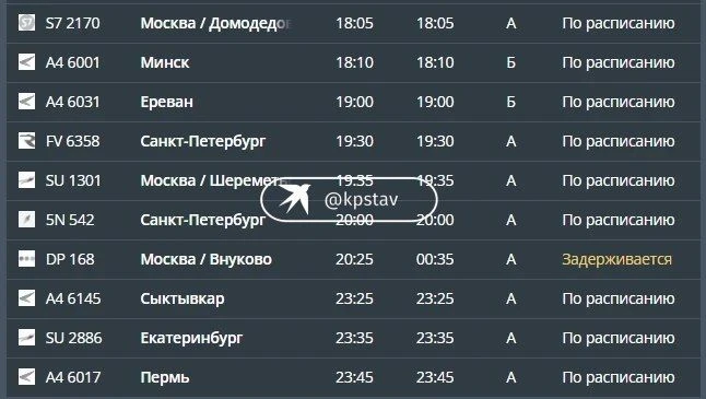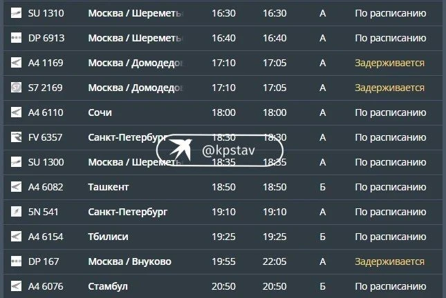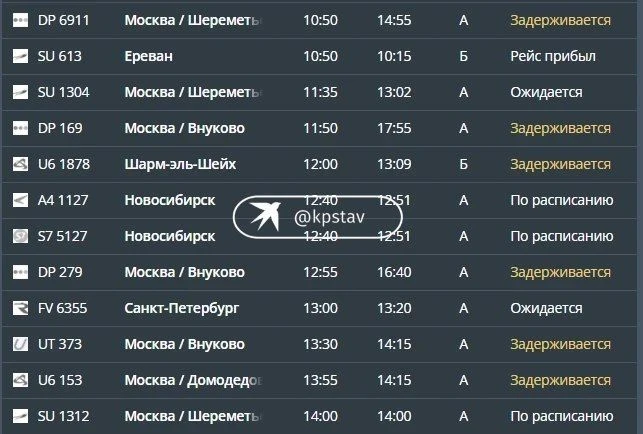 Пять - на вылет, девять - на прилет (один из них из Шарм-эль-Шейха). В аэропорту Ставрополя задержек нет.